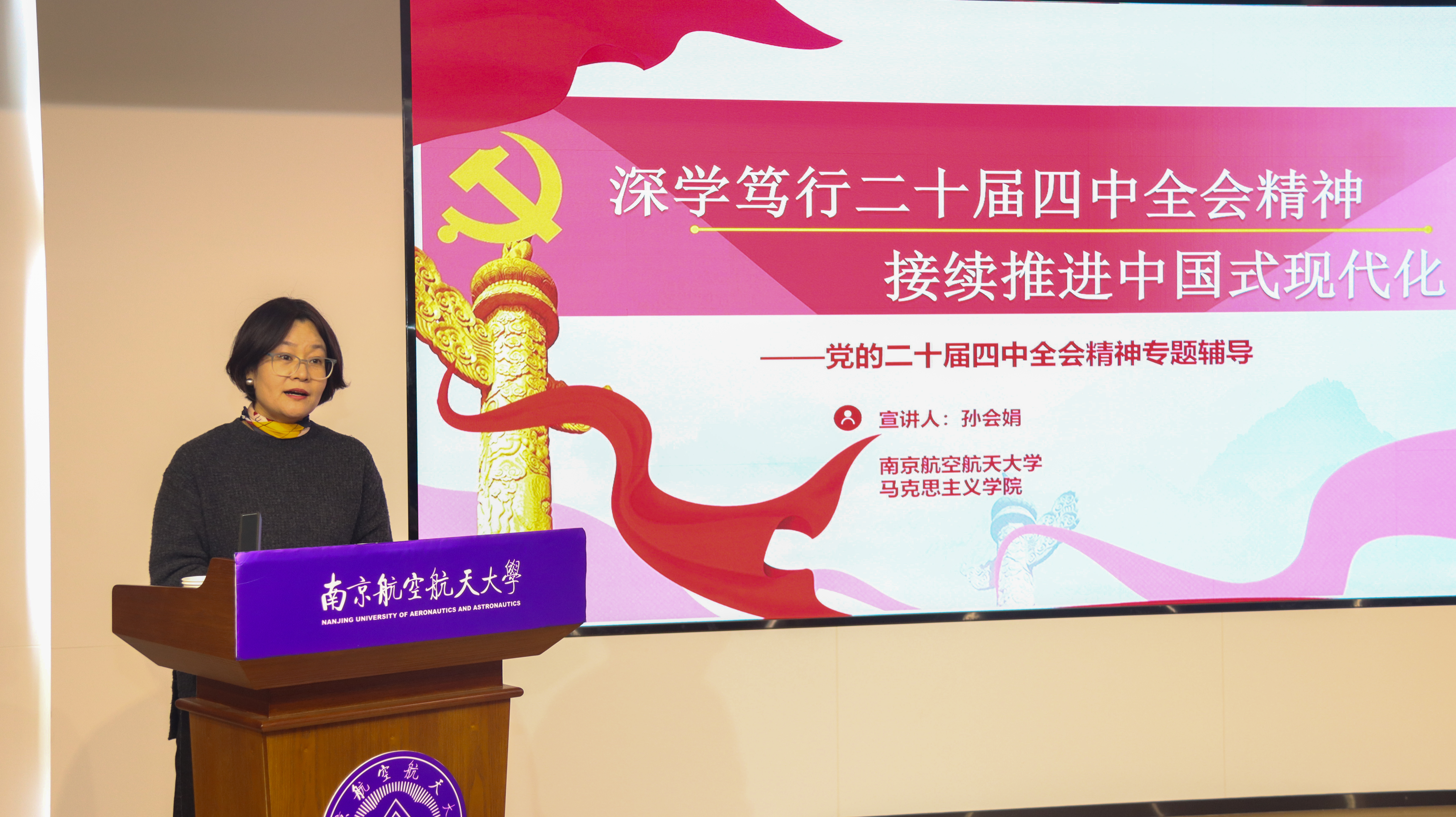 为深入学习贯彻党的二十届四中全会精神,深刻领会、全面把握全会精神的丰富内涵与核心要义,切实把全院师生的思想和行动统一到党中央决策部署上来,12月30日,继续教育学院举行学习贯彻党的二十届四中全会精神校内宣讲团报告会。本次报告会特邀校内宣讲团成员、马克思主义学院副教授孙会娟作专题辅导。学院班子成员、全院教工参加学习,报告会由学院党委书记刘建成主持。