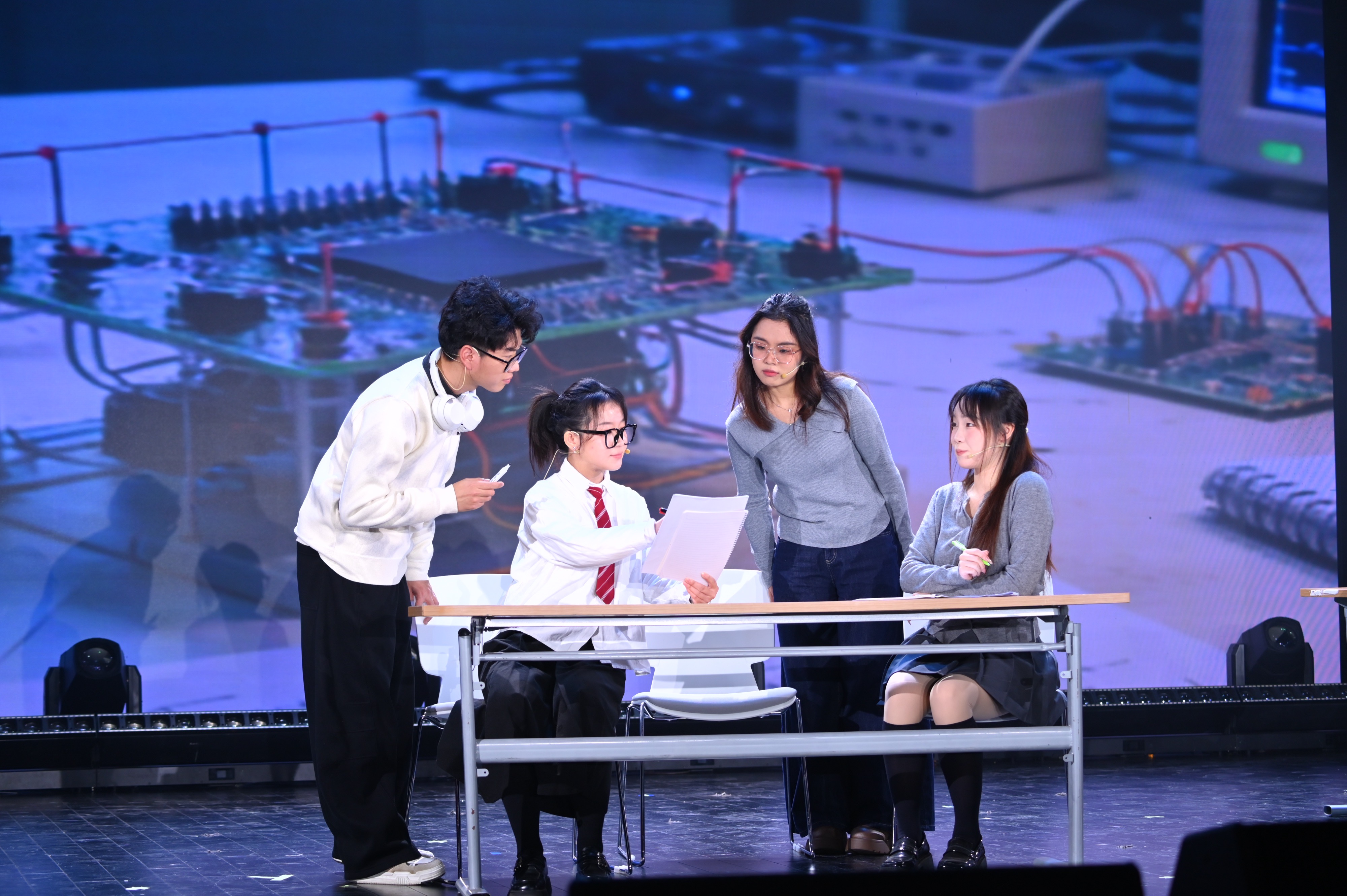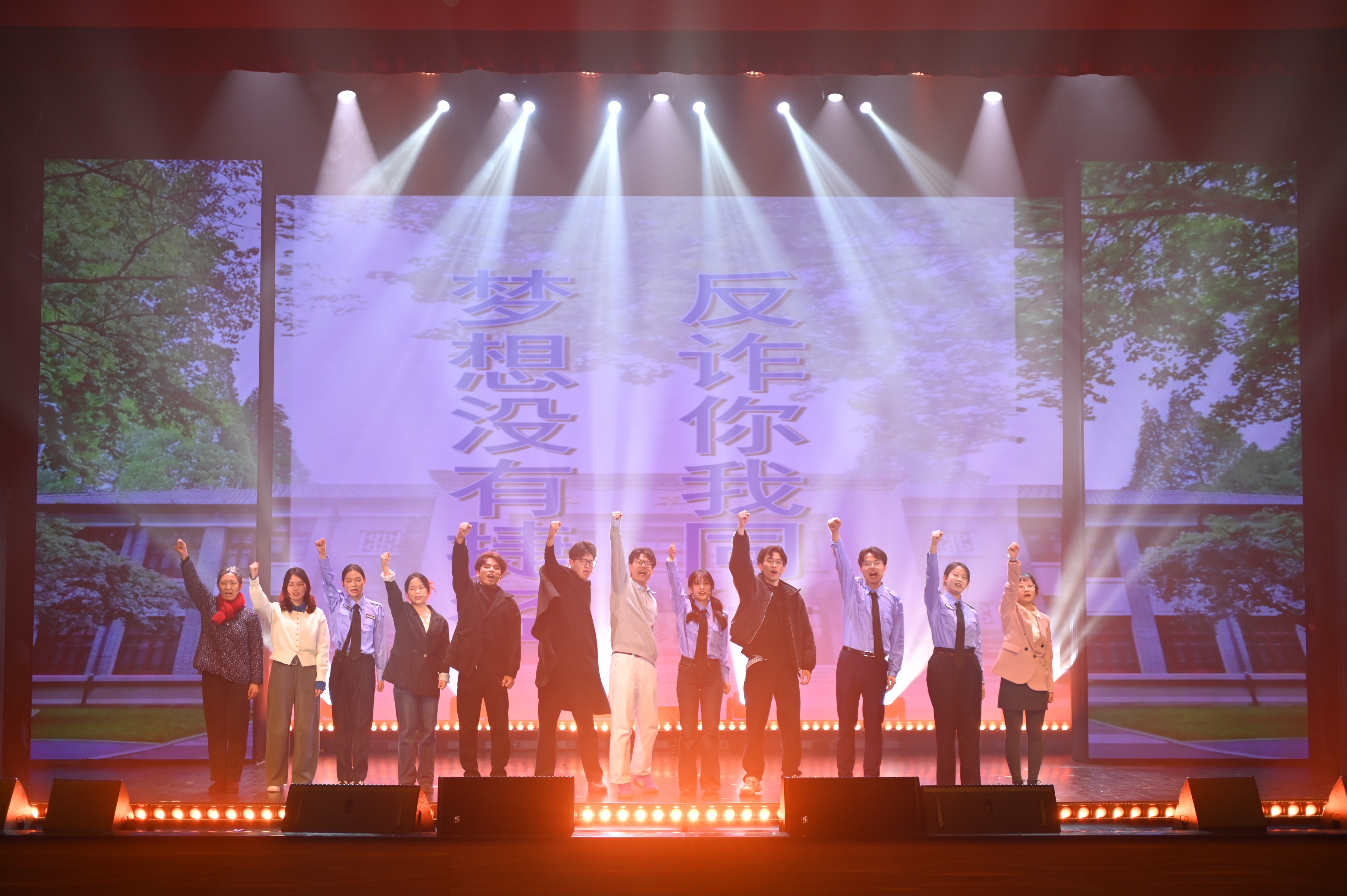 精彩演绎的背后,凝聚着全体主创人员的心血与汗水。从剧本落笔时的反复打磨、字斟句酌,到排练场里的日夜鏖战、精益求精,再到聚光灯下的全力以赴、完美呈现,每一个环节都彰显着同学们对艺术的执着追求与对使命的深刻体悟。