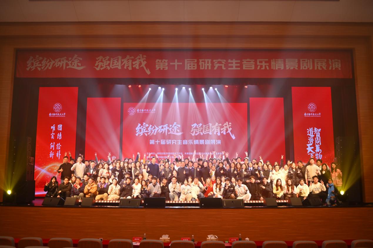 1月9日晚,“缤纷研途・强国有我”第十届研究生音乐情景剧展演在我校将军路校区艺术中心演艺剧场顺利举行。本次展演由研究生院/党委研究生工作部、共青团南京航空航天大学委员会及艺术学院主办,南京航空航天大学研究生会承办。展演特邀艺术学院院长板俊荣,校团委副书记路漫漫,艺术学院教师李子轶担任评委。各学院学生工作负责人及师生代表共同观摩展演,沉浸式感受这场融合兼具思想性、艺术性与观赏性的校园文化盛宴。