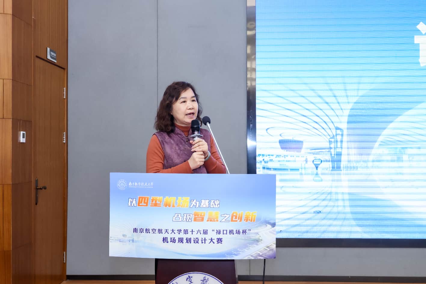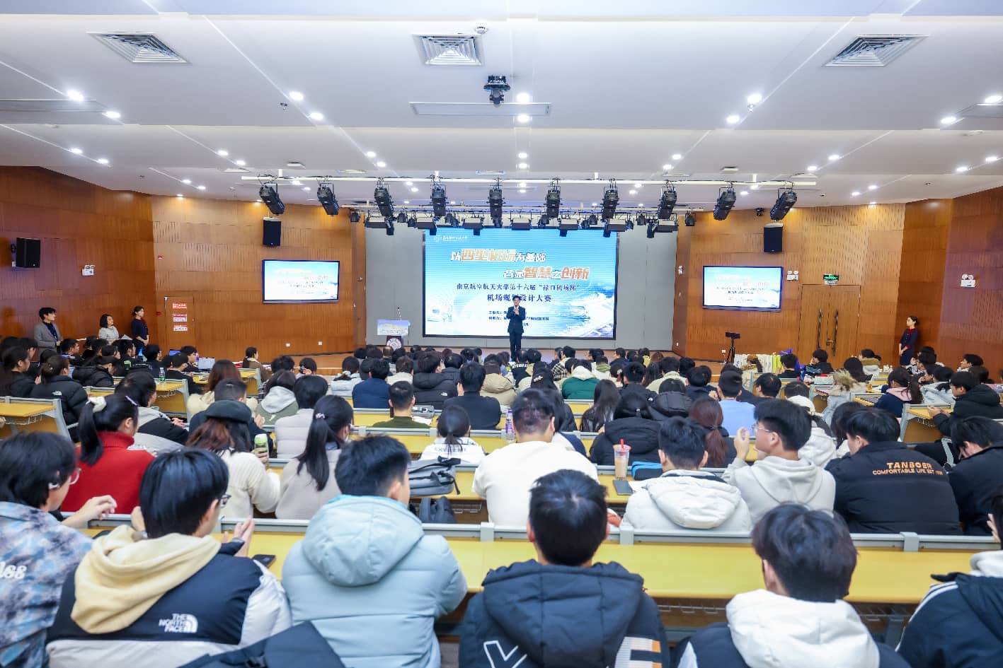 1月9日,南京航空航天大学第十六届“禄口机场杯”机场规划设计大赛决赛在天目湖校区成功举行。大赛由校教务部、校团委主办,民航学院与牧星学院致慧书院联合承办,东部机场集团有限公司副总工程师、南京禄口国际机场党委副书记、副总经理费海涛,东部机场集团有限公司党委组织部(人力资源部)副部长蔡俏,校教务处副处长李鑫,校党委学生工作部副部长、学生工作处副处长张建辉,校团委副书记芮康康,民航学院副院长吴薇薇,牧星学院党委副书记兼致慧书院执行院长丁琛,民航学院院长助理、土木与机场工程系教授解建光,民航学院交通运输系教授姜雨出席本次活动并担任评委。活动吸引了300余名学生现场观摩。