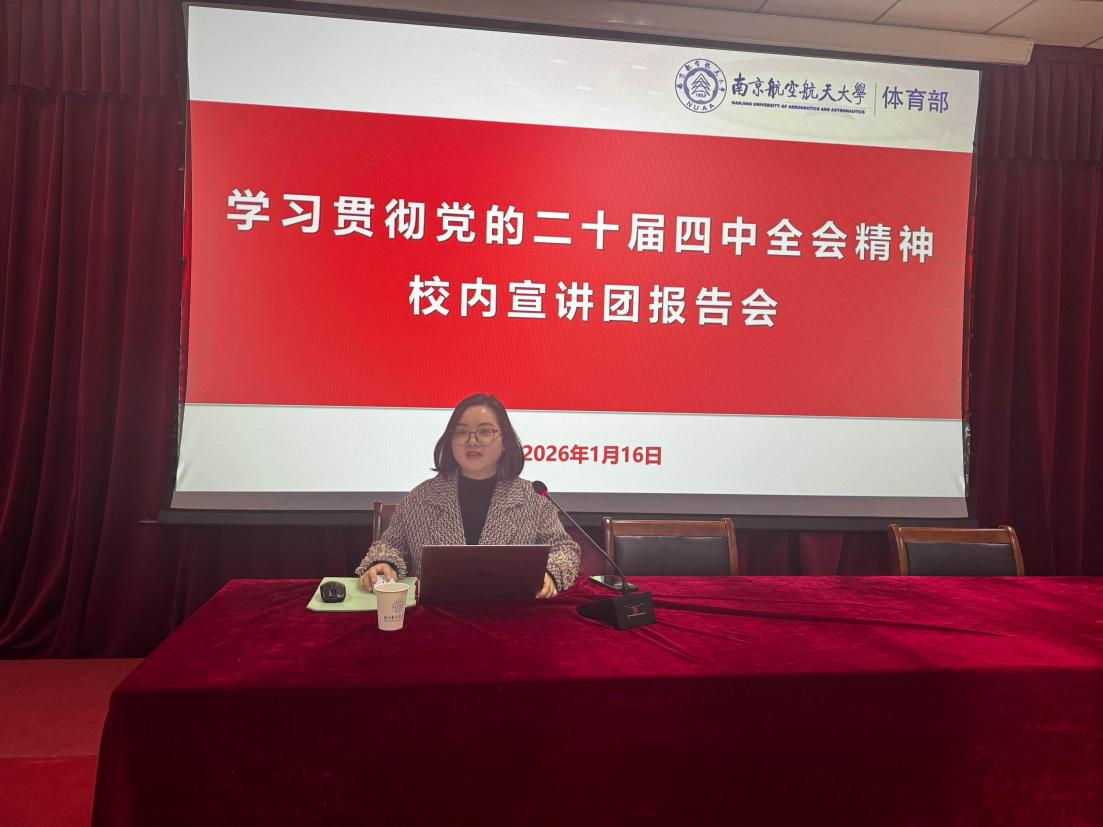 为深入学习贯彻党的二十届四中全会精神,1月16日上午,体育部在将军路校区体育中心会议室举办学习贯彻党的二十届四中全会精神校内宣讲团报告会。本次报告会由校内宣讲团成员罗兰老师主讲,体育部全体教职工参加报告会,会议由党委书记邬沛雄主持。