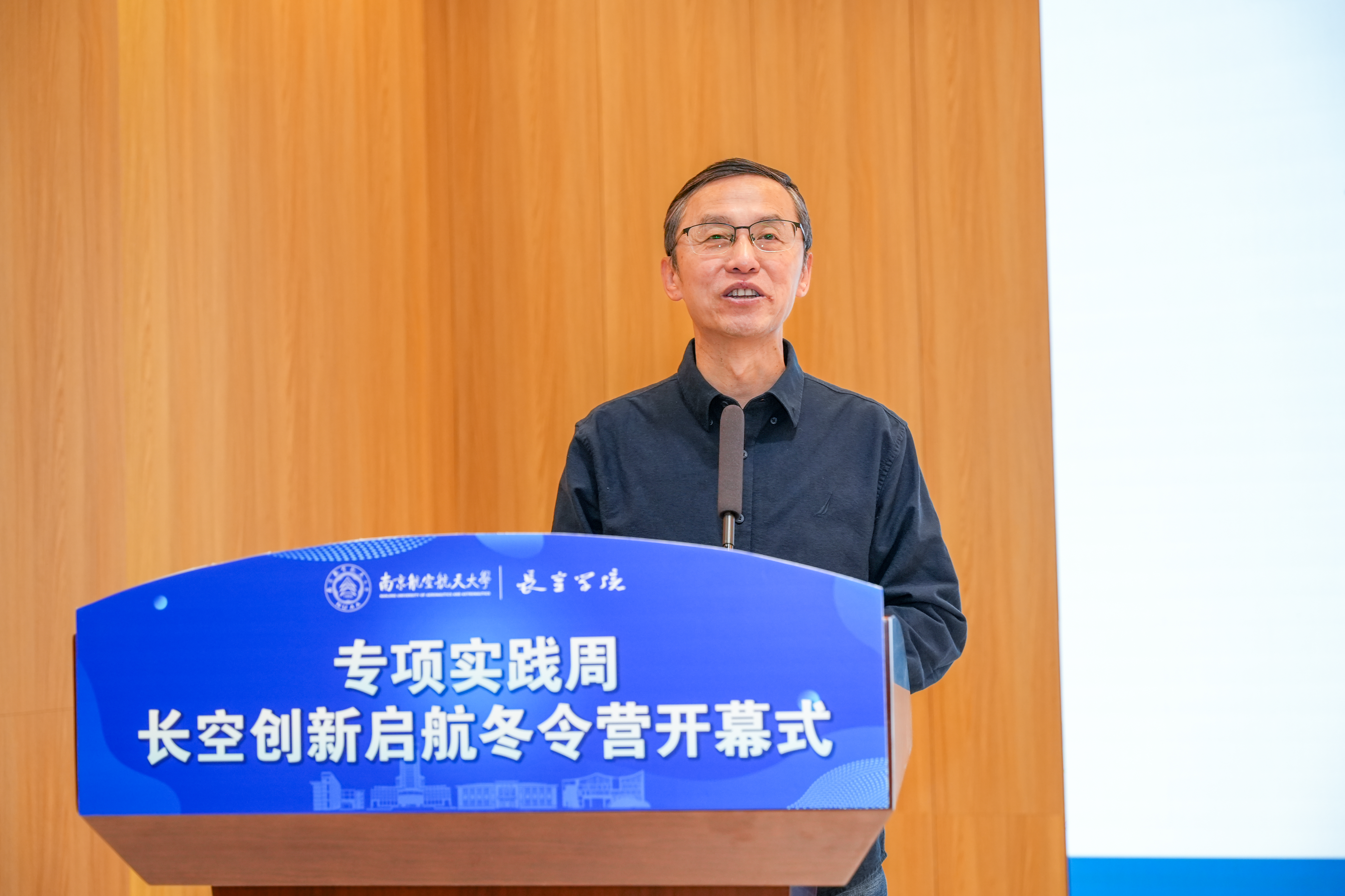 长空学院党委书记、院长朱建军致欢迎辞。他表示,作为学校人才培养改革的“先行区”,长空学院着力构建进阶式科研训练体系,育人成效显著。本次冬令营精心设计四大核心模块,为长空学子搭建了探知前沿、赋能成长的优质平台。
