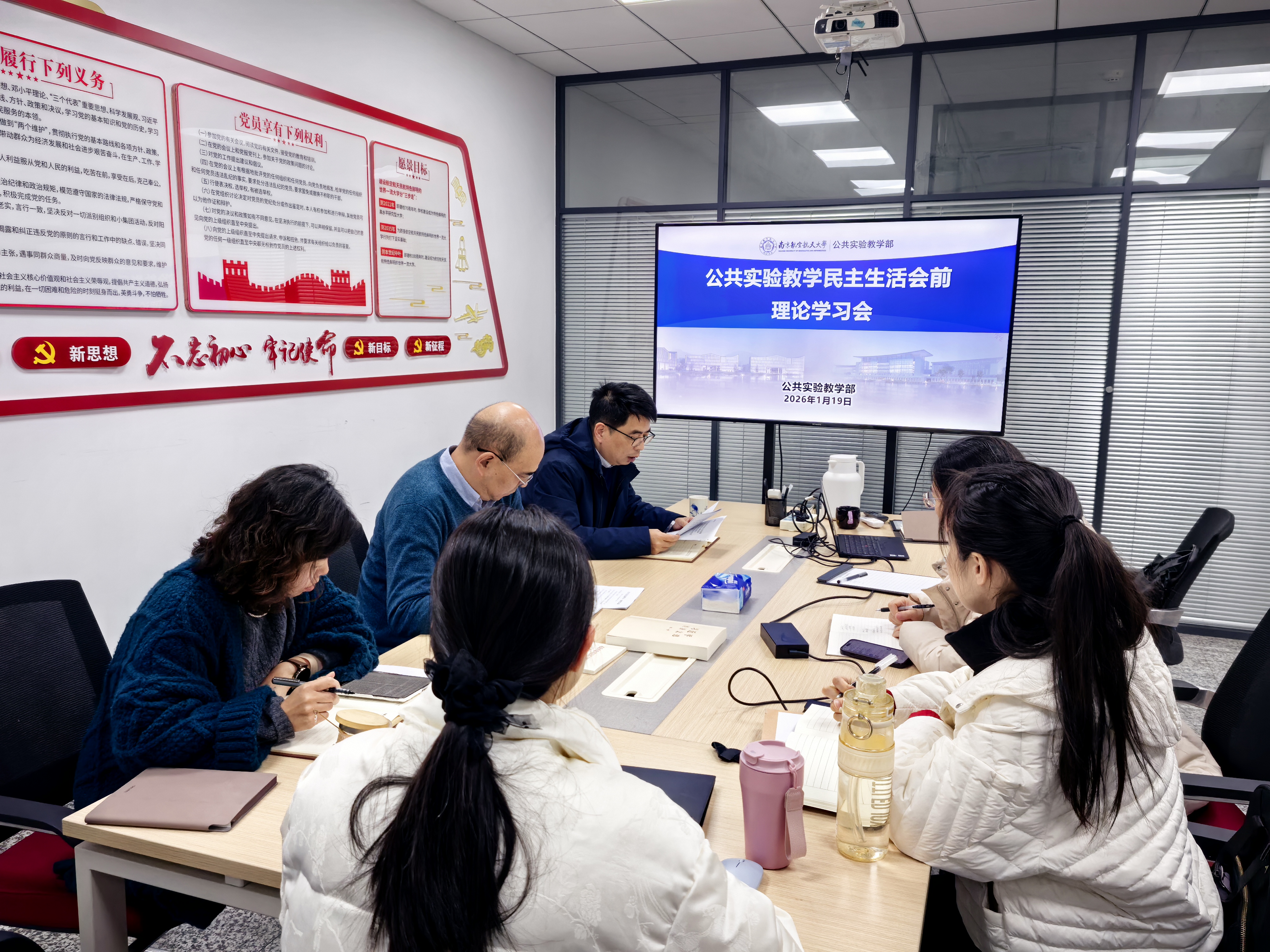 1月19日,公共实验教学部党委举行2025年度民主生活会前集中学习,全体领导班子成员、各党支部书记参加学习,党委书记张庆主持会议。
