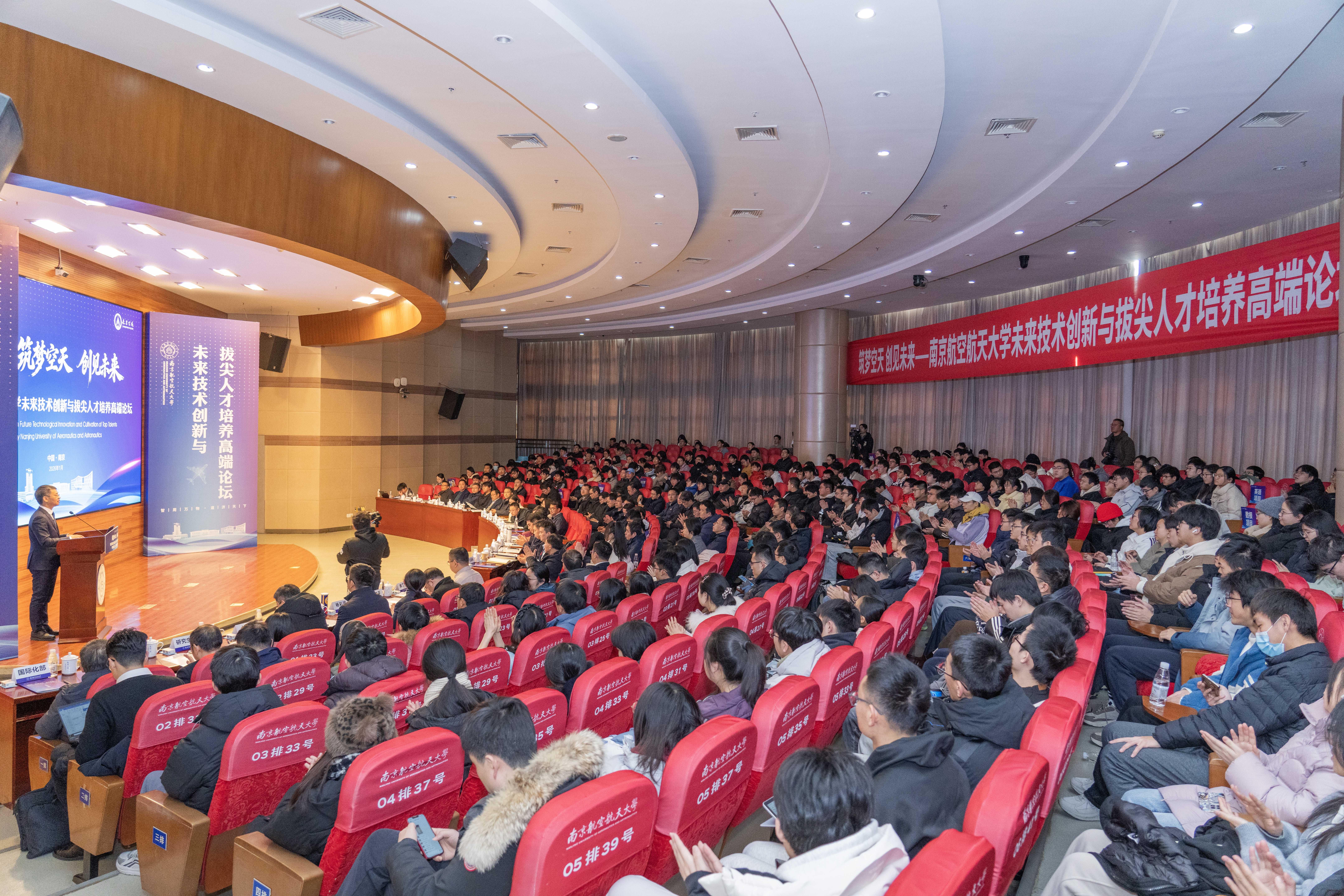 1月22日,我校举行“未来技术创新与拔尖人才培养高端论坛”暨未来技术学院揭牌仪式。中国科学院院士郭万林、郑海荣,校长姜斌、校长助理潘时龙,以及来自中国航天科技集团、中国航天科工集团、中国航空工业集团、中国电子科技集团、中国航发、中国商飞、国家高端航空装备技术创新中心有限公司等顶尖企业和东南大学等兄弟高校的代表共聚一堂,共商未来技术发展大计,共绘拔尖创新人才培养蓝图。
