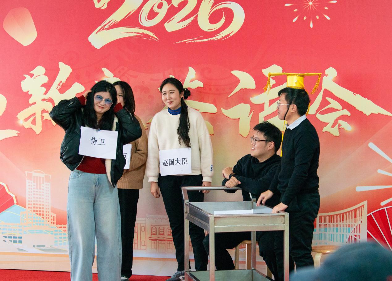 文艺表演环节精彩纷呈,点燃了全场热情。歌曲串烧《小酒窝》、《大风吹》,以熟悉的旋律和轻松的节奏,引发全场大合唱;情景剧《完璧归赵》构思新颖、趣味十足,打破常规的表演方式让现场笑声不断,充分展现了教职工们多才多艺、活力满满的精神风貌。互动游戏环节同样备受瞩目,教职工们积极参与趣味互动,现场欢声笑语此起彼伏。