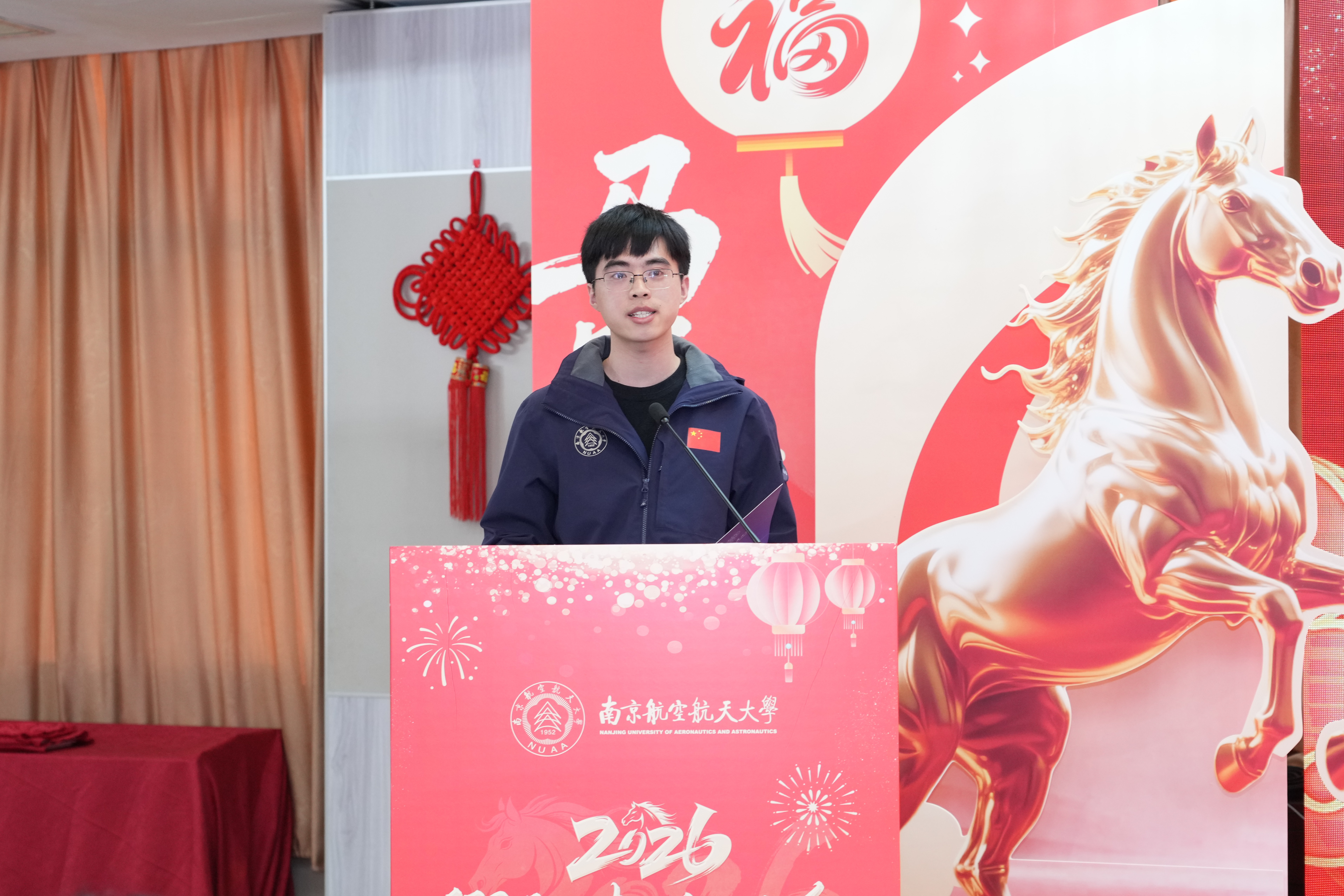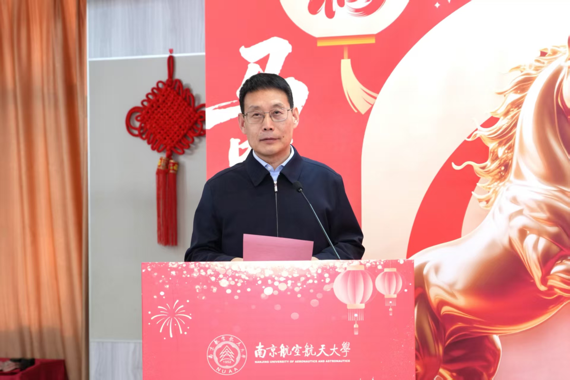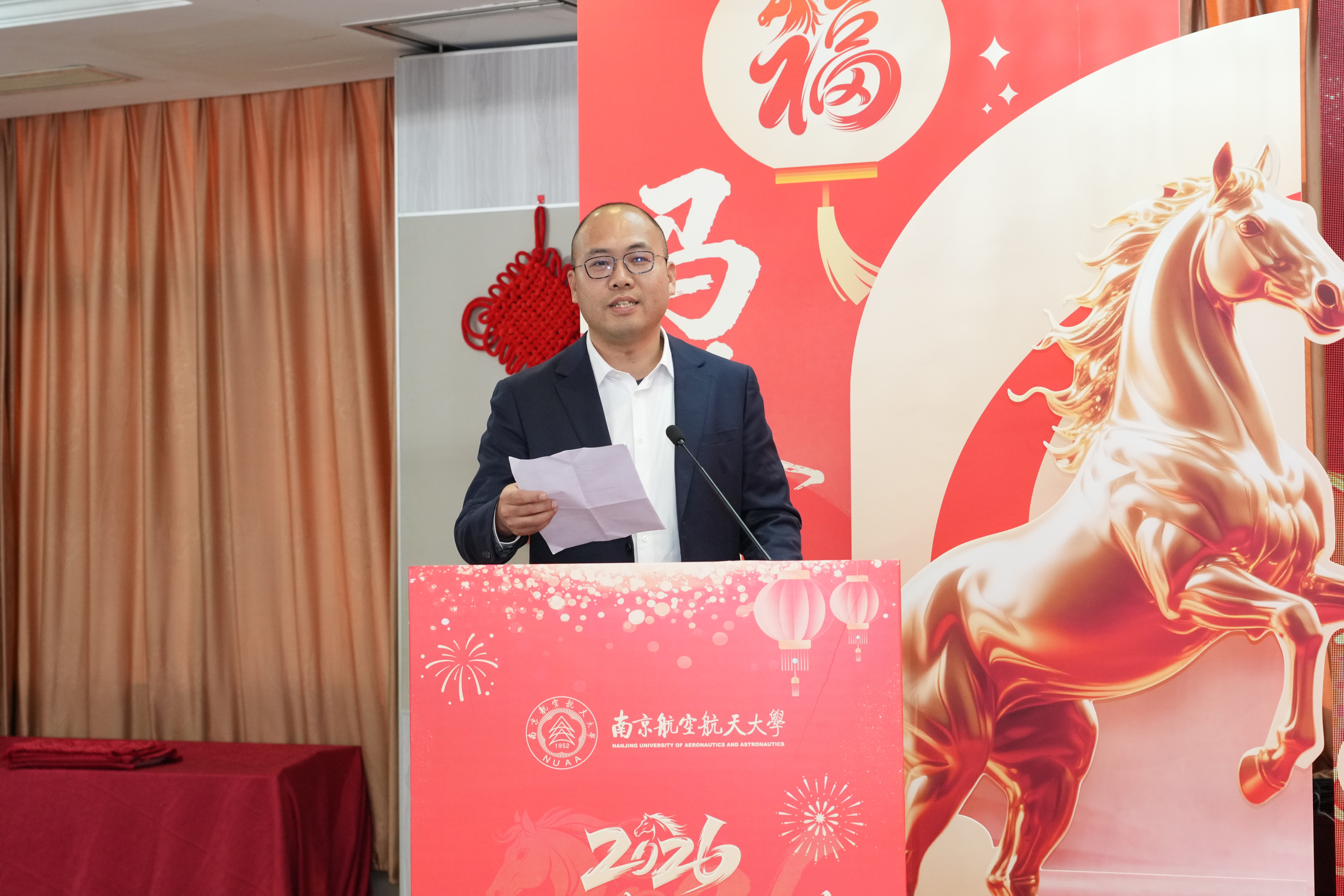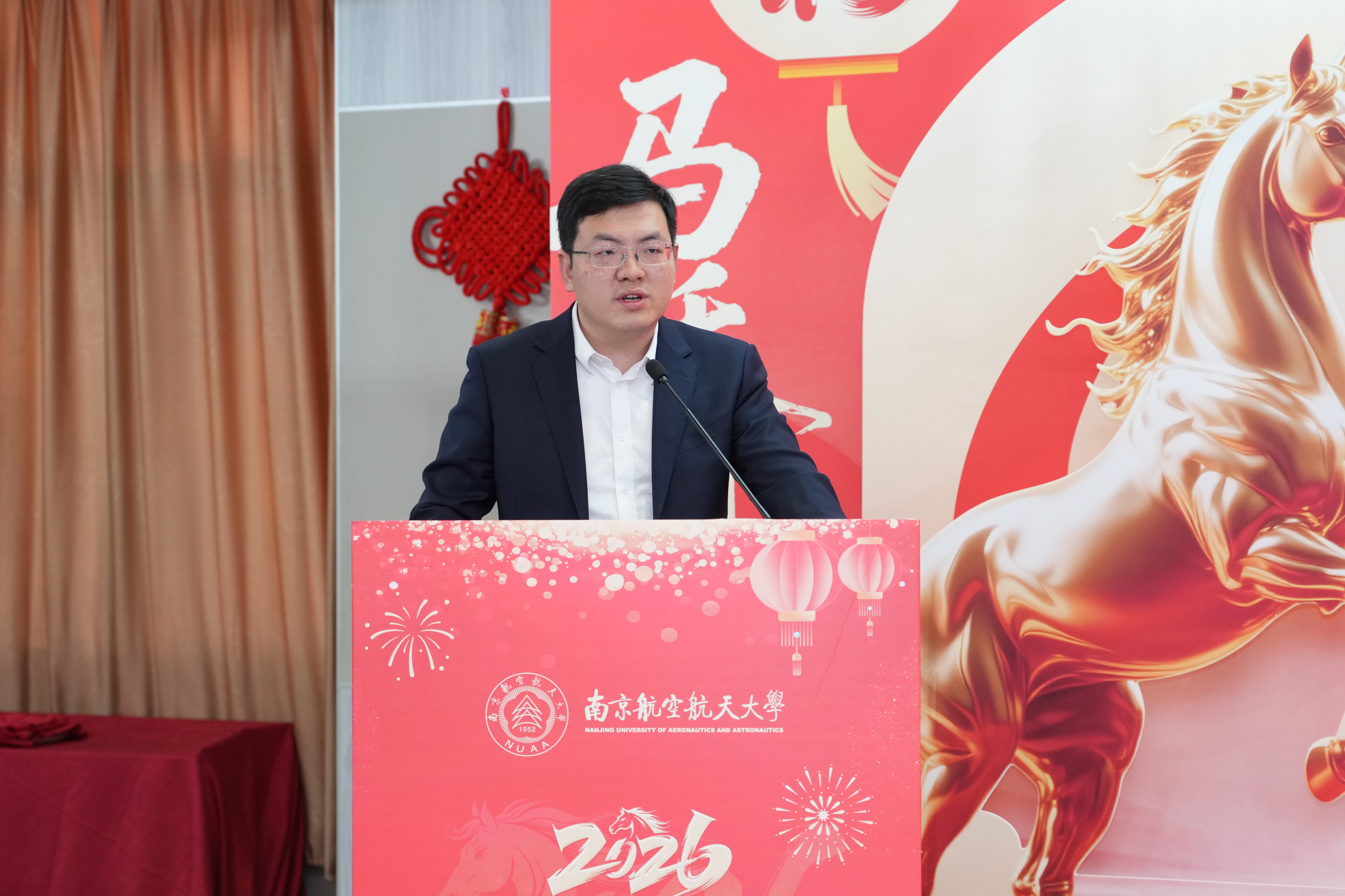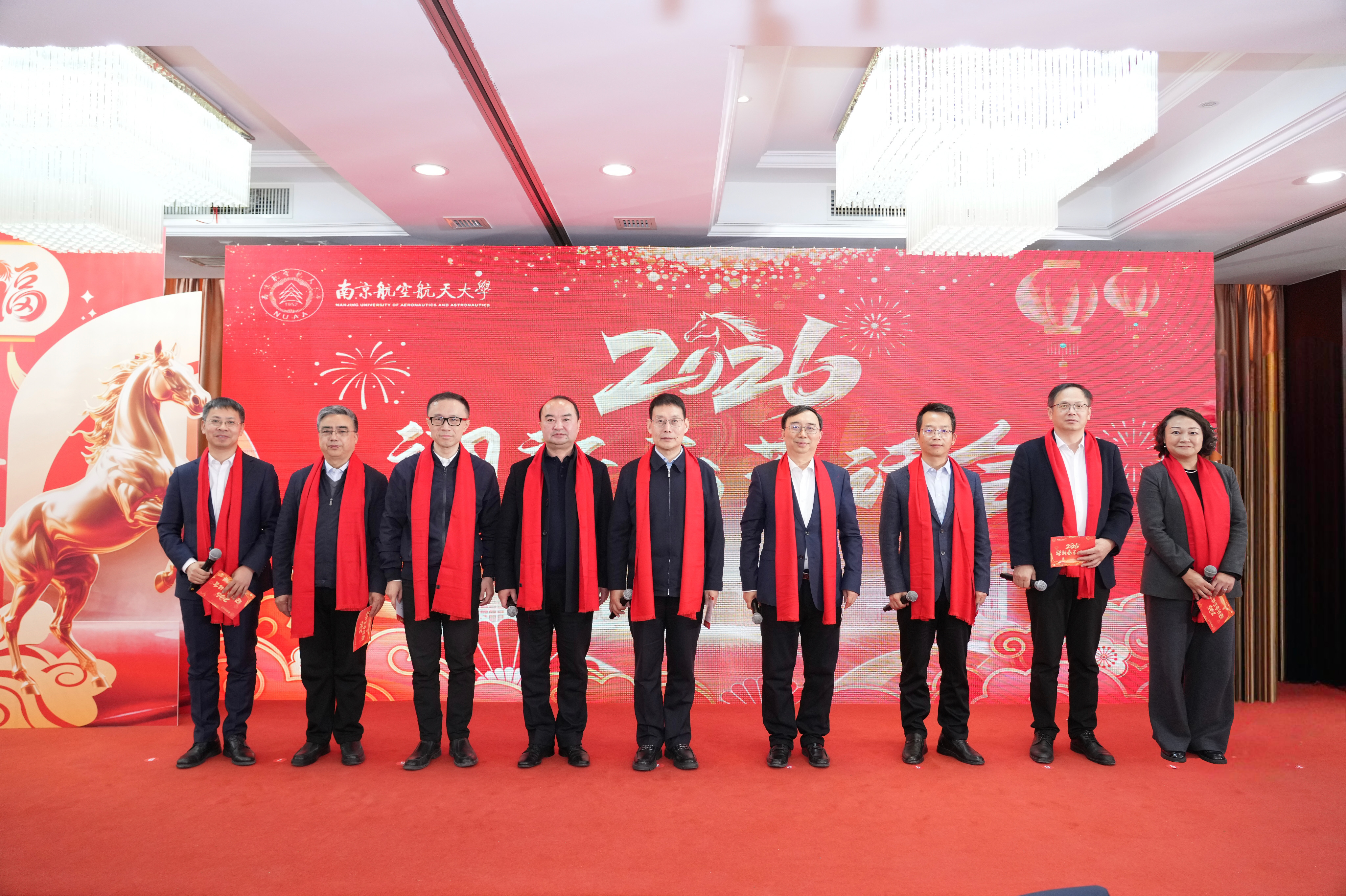 校长姜斌宣读了南京航空航天大学2025年光荣榜和2025“感动南航”年度人物及提名奖获得者名单,并向获奖集体和个人表示热烈祝贺。他指出,2025年全体南航人干出了新气象、实现了新突破,学校在人才培养、科技创新、师资队伍建设等领域全面发力并取得了显著成效,在世界一流大学建设征程上写下了浓墨重彩的一笔。他强调,2026年是“十五五”规划的开局之年,要继续发扬好负重奋进、志在超越的南航精神,以“策马扬鞭”的奋进姿态,“万马奔腾”的创造活力,“马不停蹄”的实干精神,在加快建设航空航天民航特色鲜明的世界一流大学道路上不懈奋斗,共同推动学校2035年发展愿景逐步成为美好现实。