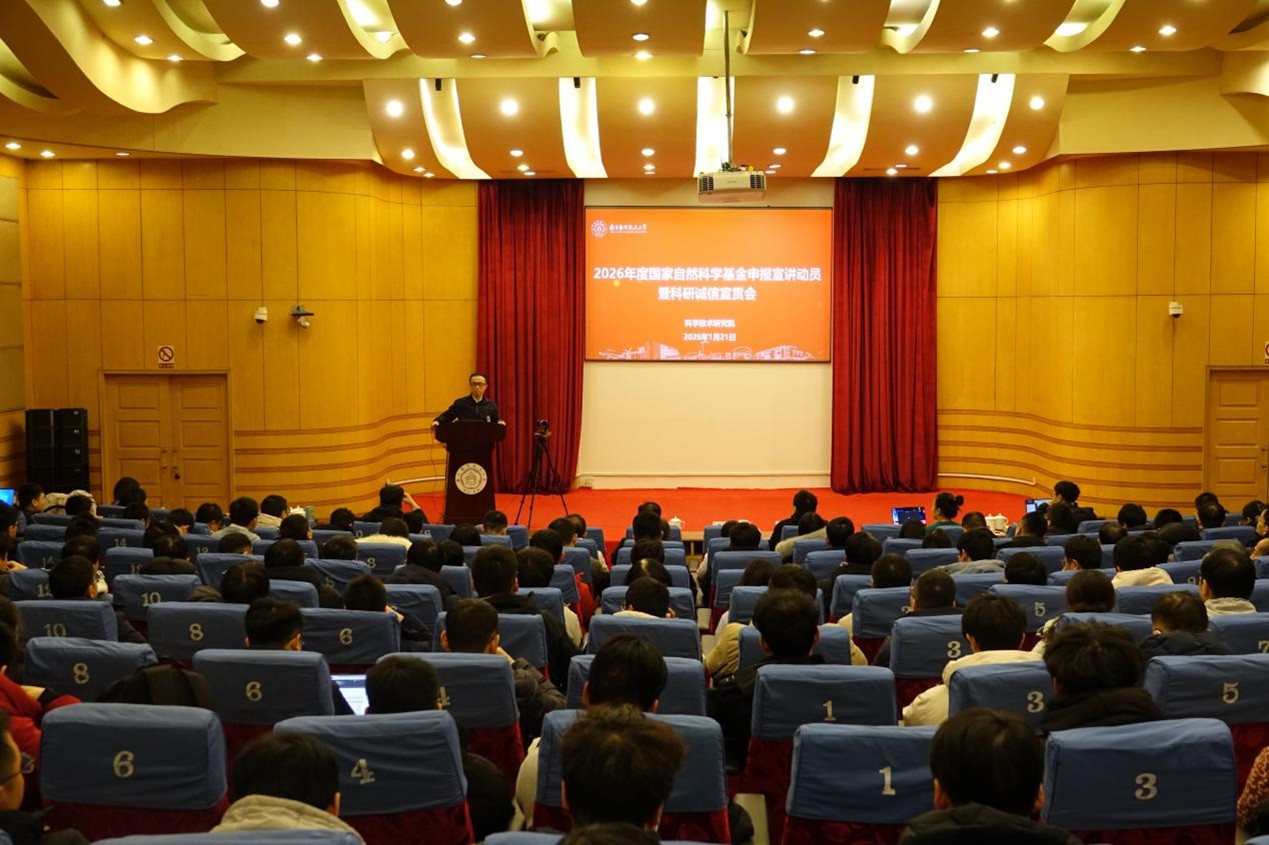 为深入贯彻国家科技创新战略,衔接“十五五”发展规划,扎实推进2026年度国家自然科学基金申报工作提质增效,筑牢学校基础研究与原始创新根基。1月21日,我校在明故宫校区科学馆隆重召开2026年度国家自然科学基金申报动员会。我校广大教师、博士后、专职科研人员、学院和科研院相关负责同志250余人参加了本次申报动员会。校党委常委、副校长徐正扬出席会议并讲话,科研院院长毛军逵主持会议。
