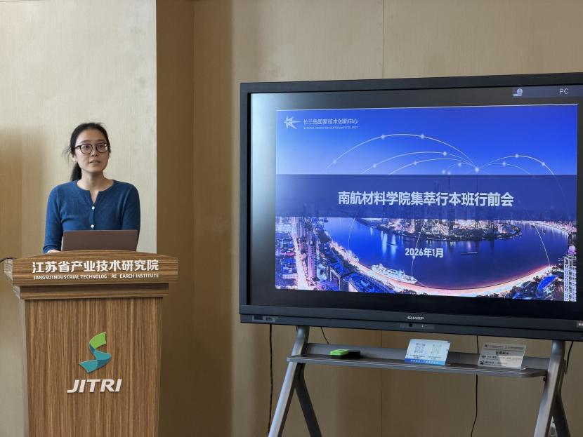 随后,举行了集萃行本创新班开班仪式,仪式由樊陆欢主持。她首先对南京航空航天大学材料科学与技术学院一行及集萃行本创新班全体同学的到来表示热烈欢迎,并简要介绍了江苏省产业技术研究院在工程教育与产教融合方面的整体布局。她表示,集萃行本创新班是双方深化协同育人、推动教育链与产业链深度融合的重要探索,希望同学们珍惜难得的实践机会,在真实产业环境中锻炼工程能力、提升综合素养。