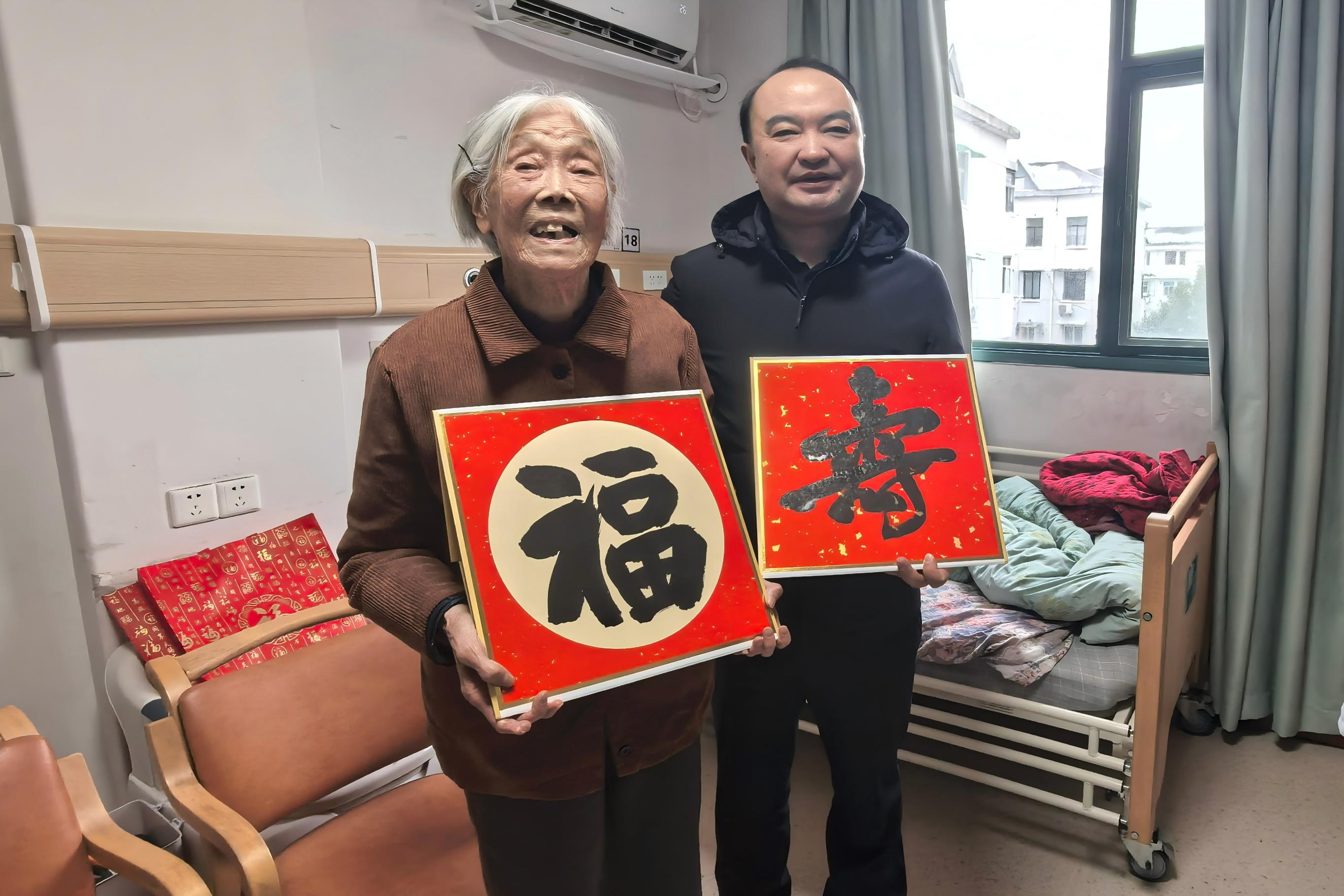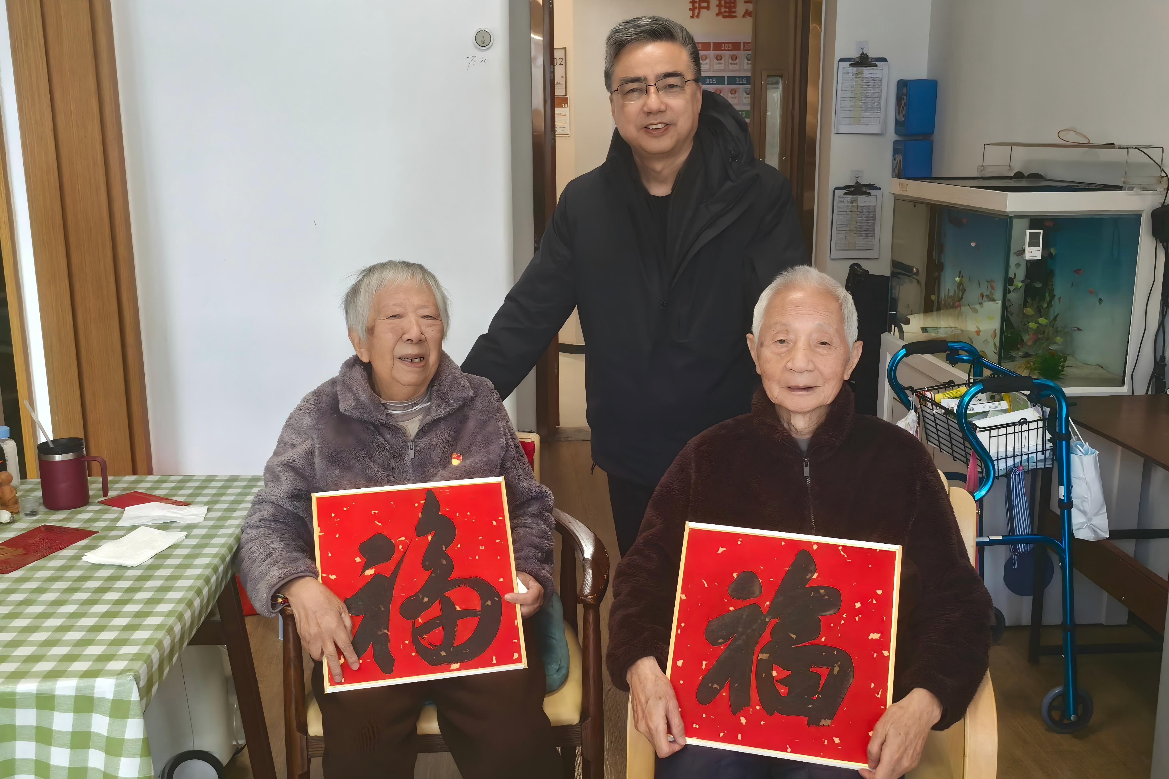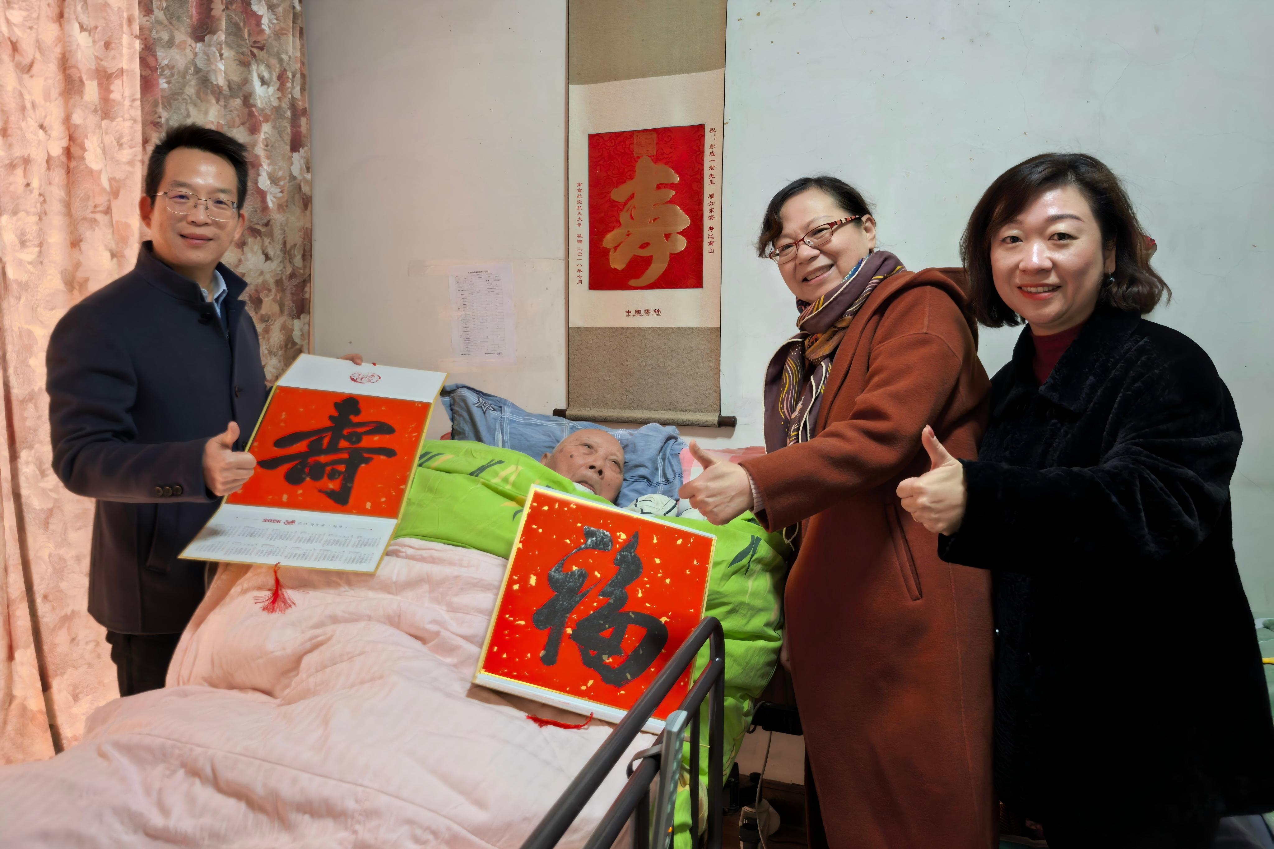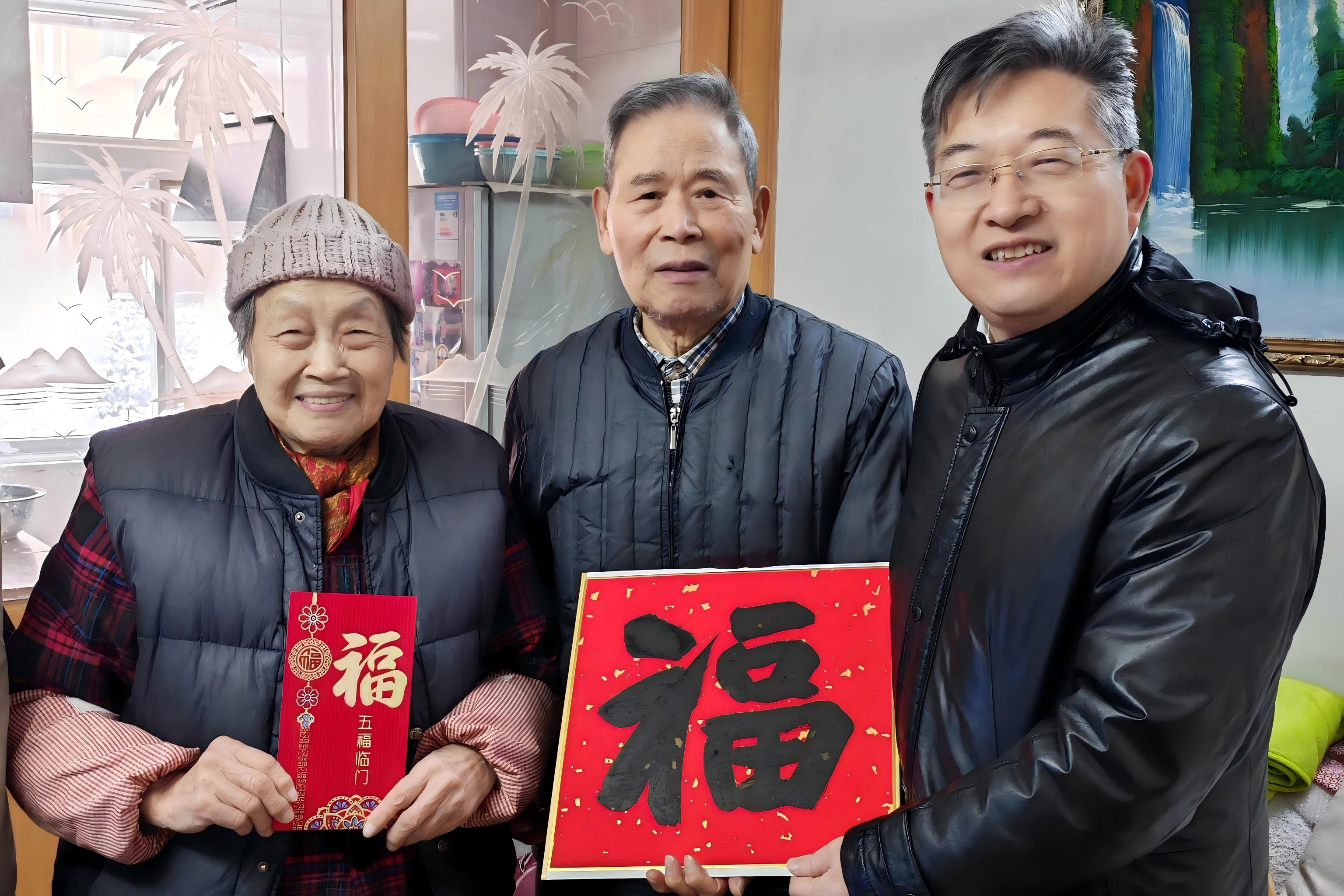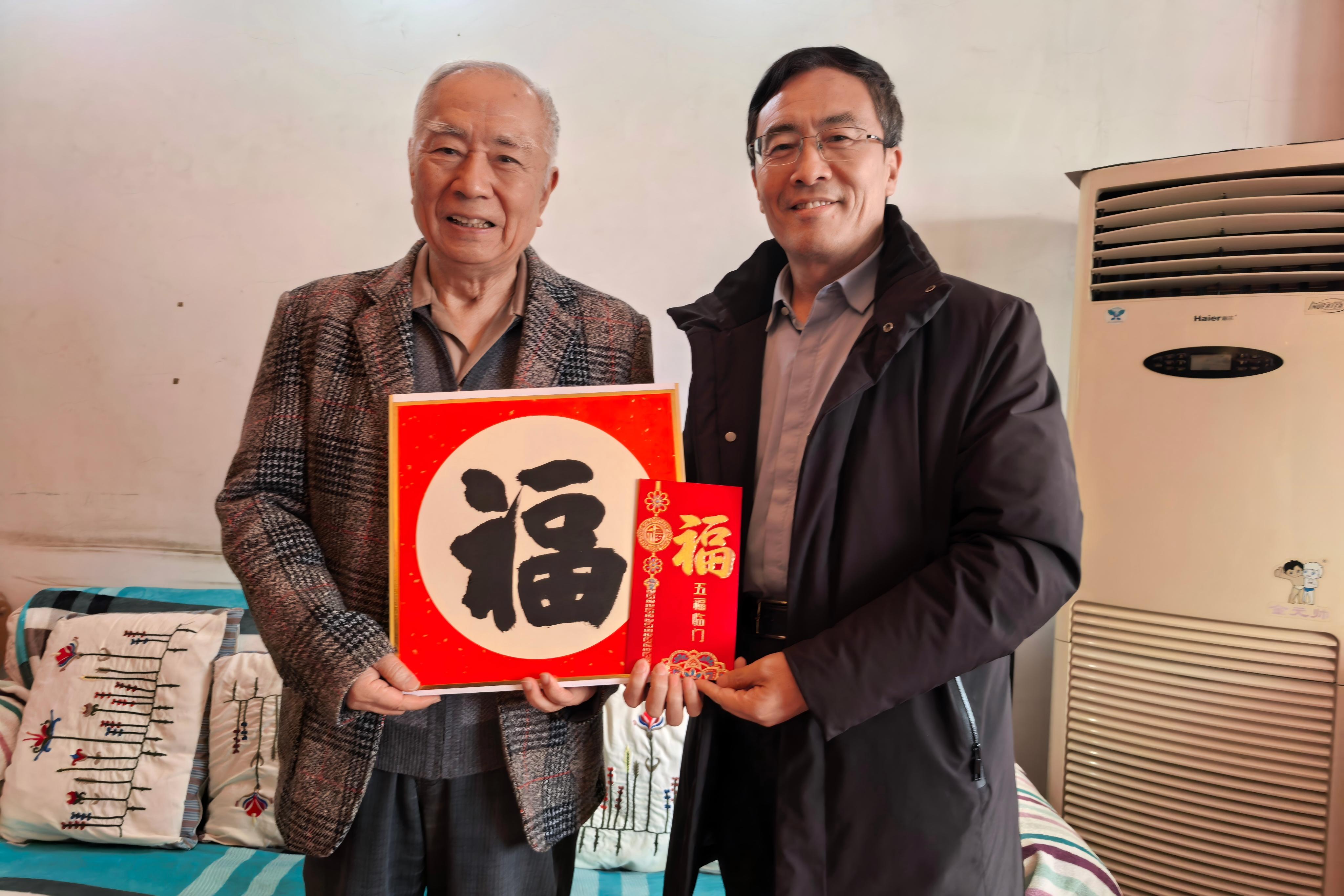 慰问现场暖意融融。校领导悉心询问老同志们的健康状况和生活情况,认真聆听他们当年建设学校、教书育人的生动故事,衷心感谢他们为学校发展奠定的坚实基础和作出的卓越贡献,并详细介绍了学校2025年各项事业取得的丰硕成果。慰问中,校领导还特别送上了由我校老年书画研究会老同志与青年书法家亲手书写的“福”字挂历,一幅幅墨宝承载着吉祥的寓意,将美好的祝愿送到老同志手中。