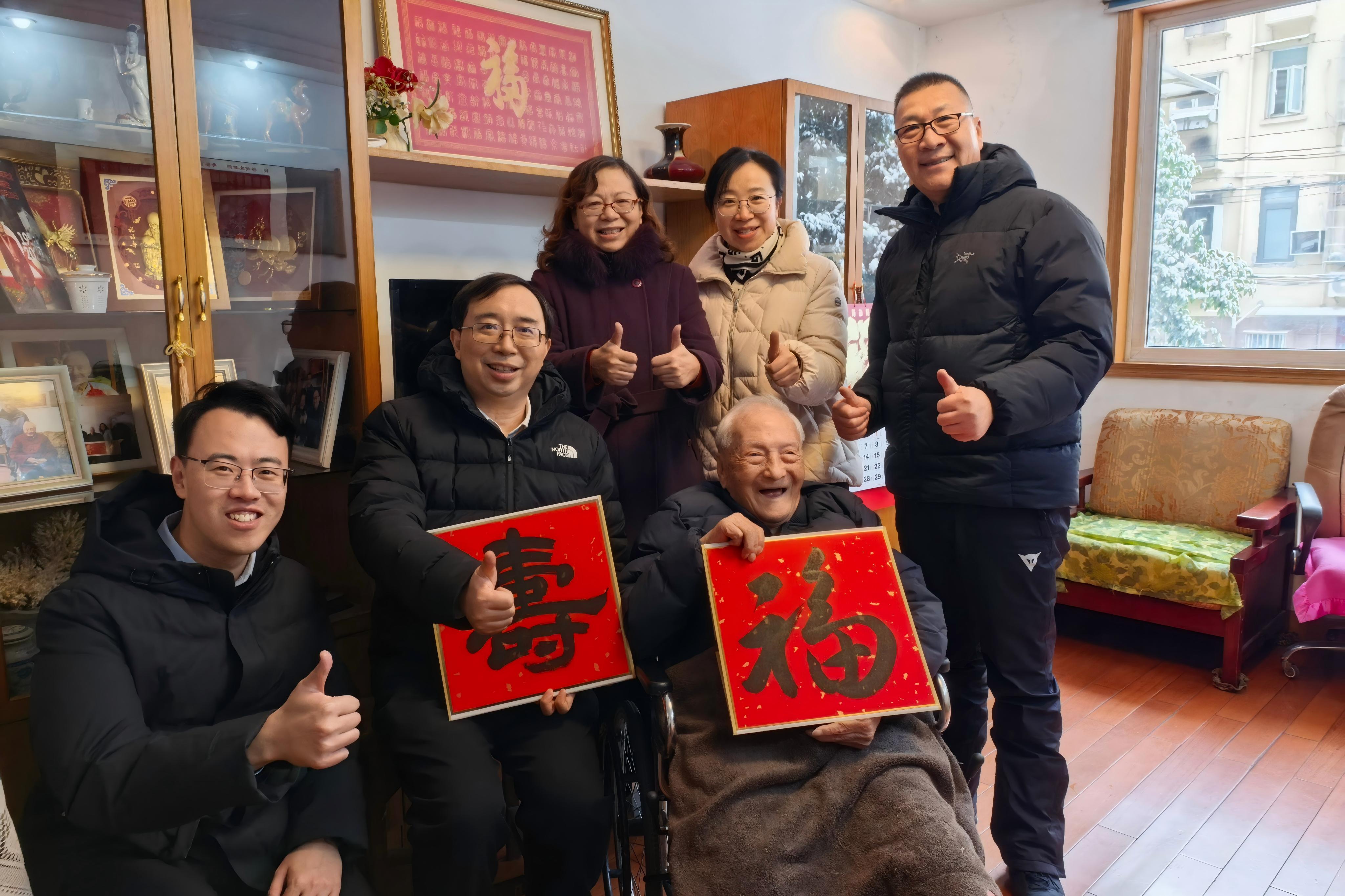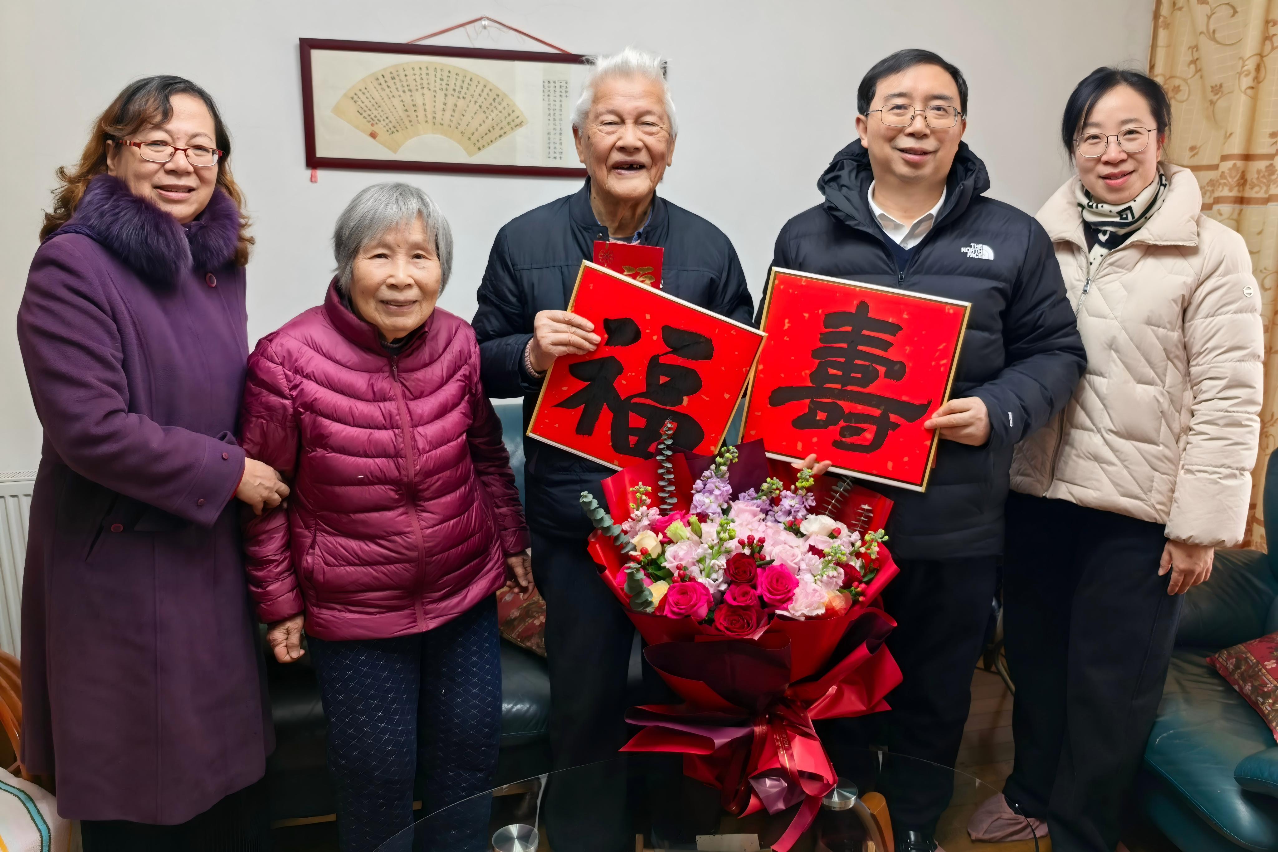 本次走访慰问期间,欣逢航空学院徐鹰、乔新,计算机科学与技术学院胡青枫三位老同志新晋百岁之喜,校领导特地为他们送上百岁生日贺礼。至此,我校百岁老人已达八位,学校为每位百岁老人致以新春的祝福,这正是我校“幸福校园”建设的生动写照。