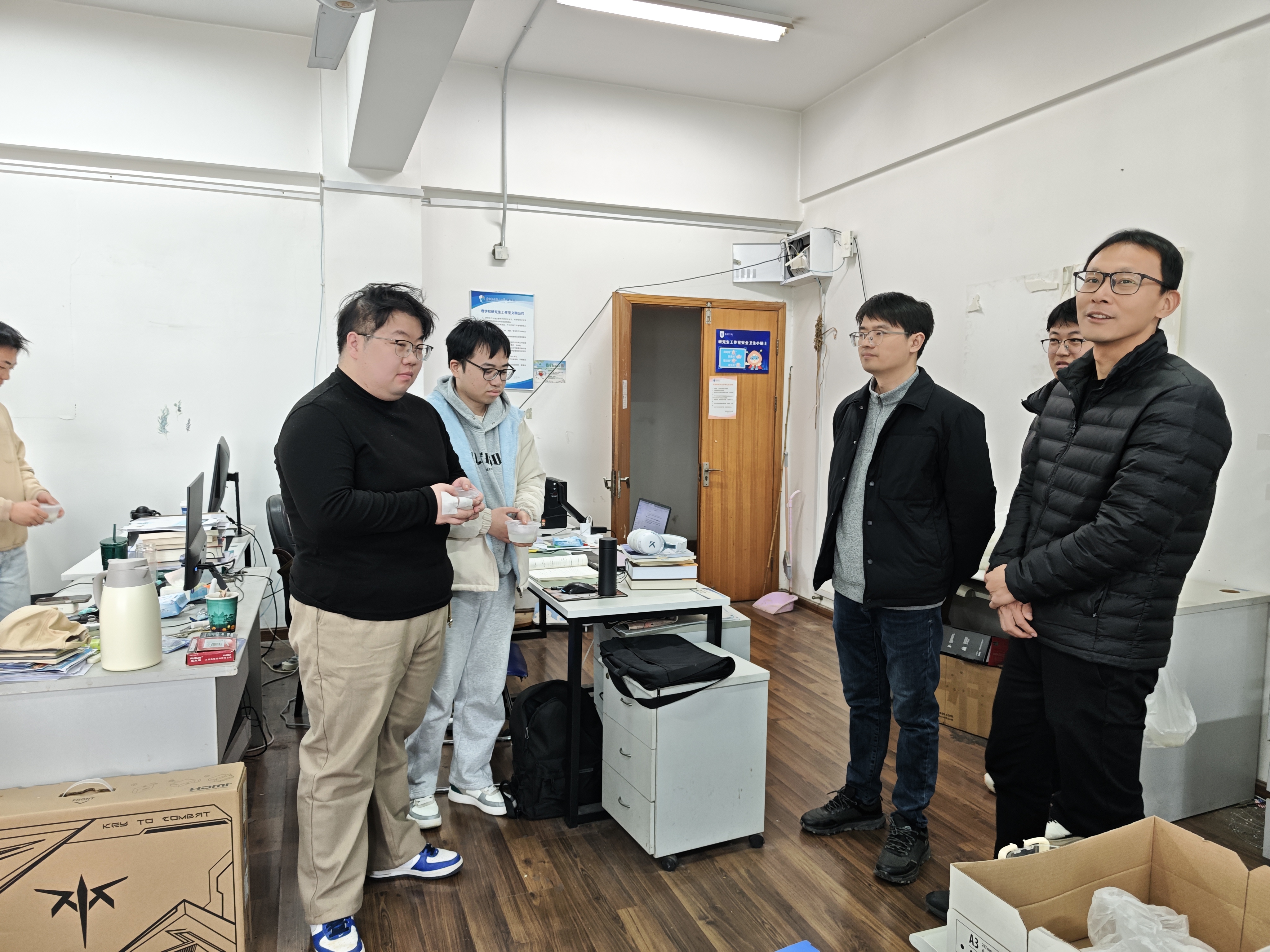 走访过程中,院领导将一碗碗香甜的汤圆送到同学们手中,送上元宵佳节的美好祝福,与大家亲切促膝交谈,详细询问假期生活、返校适应情况,认真倾听同学们新学期的科研学习计划,深入了解大家在科研进展、学习生活中遇到的问题与需求,现场为学生答疑解惑、鼓劲加油。