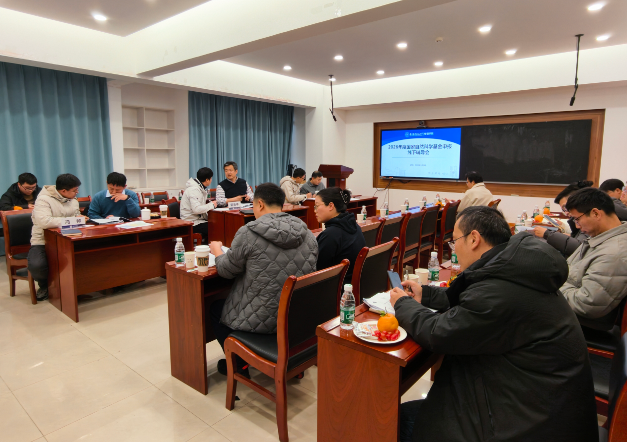为扎实推进学院2026年度国家自然科学基金申报工作,切实提升申请书的质量与竞争力,物理学院于2月28日、3月1日分批次组织开展了2026年度国家自然科学基金申请专家辅导会。本次辅导坚持问题导向与精准指导相结合,采取“线上+线下”方式,邀请了北京大学李新征教授、浙江大学田鹤教授、郑州大学郭海中教授、中央民族大学冯帅教授开展一对一深度交流指导,围绕申请书核心内容进行逐项打磨,物理学院副院长杨浩、伏洋洋以及30余名教学科研岗教师参加。此次辅导会由杨浩主持。