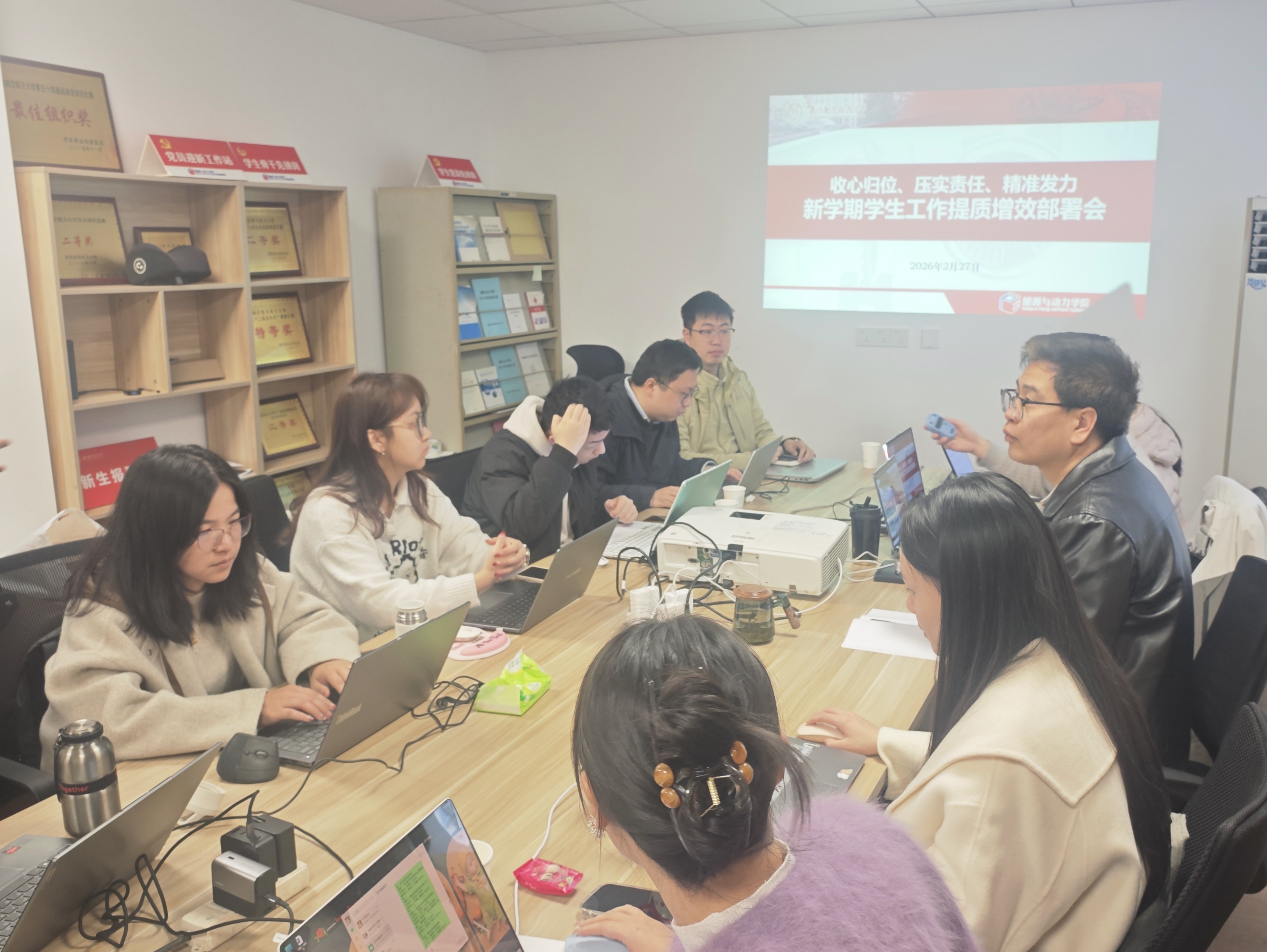 为落实2026年学院学生工作提质增效务虚会的精神,推动学工队伍迅速收心归位、凝聚共识,精准锚定新学期学生工作重点方向,2月27日,能源与动力学院召开2026年春季学期学工务实会。会议由学院党委副书记樊小杰主持,全体专兼职辅导员参与。