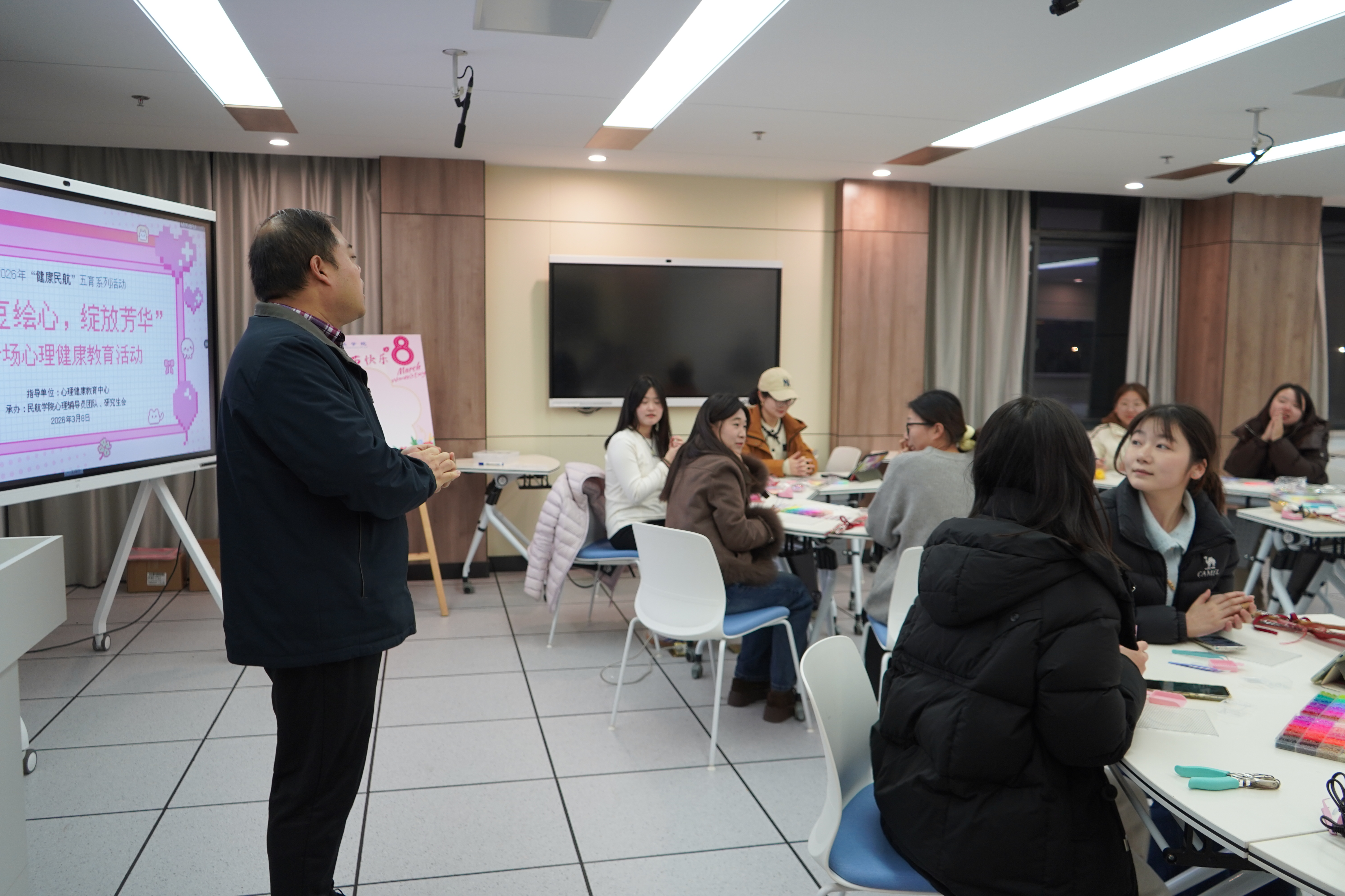 本次活动是“健康民航”五育系列活动之一,将手作体验与心理健康引导相融合,既让女同学们度过了温馨节日,更在潜移默化中鼓励女同学们绽放芳华、从容自信迎接未来挑战。未来,民航学院将继续坚持五育并举,聚焦学生身心健康与全面发展,把价值引领与人文关怀融入育人全过程,以更有温度、更有特色的品牌实践活动滋养心灵、赋能成长。