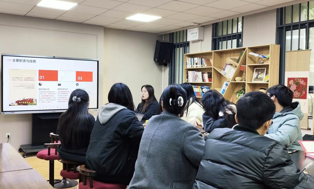 为深入学习贯彻2026年全国两会精神,强化学生党员主责主业意识,3月10日,人文学院开展“红心领航思享会”专题学习领会2026年全国两会精神。会议由学院辅导员聂小芳主持,学院学生党支部书记及学生党员骨干参加学习。