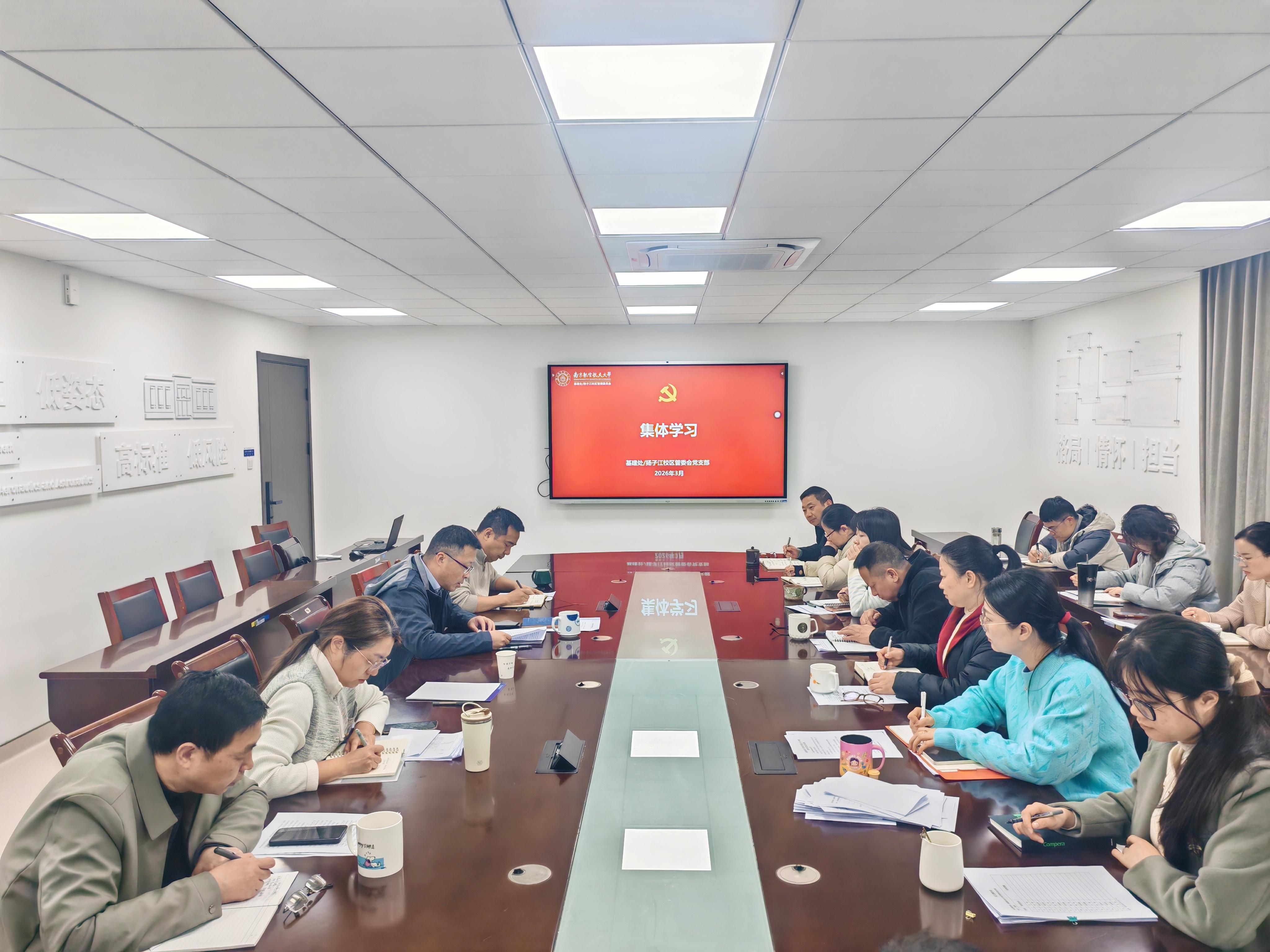 会议集中学习传达学校2026年党的建设暨党风廉政建设工作会议精神、树立和践行正确政绩观学习教育动员部署会精神以及学校干部教师大会精神,深入学习贯彻学校《十年行动计划》,紧扣学校党委决策部署与学校发展大局,对树立和践行正确政绩观学习教育进行全面启动部署,引导全体人员深刻把握正确政绩观核心要义,牢固树立为民造福的政绩观,把实绩实效作为工作根本导向,以担当实干践行基建工作的使命与责任。