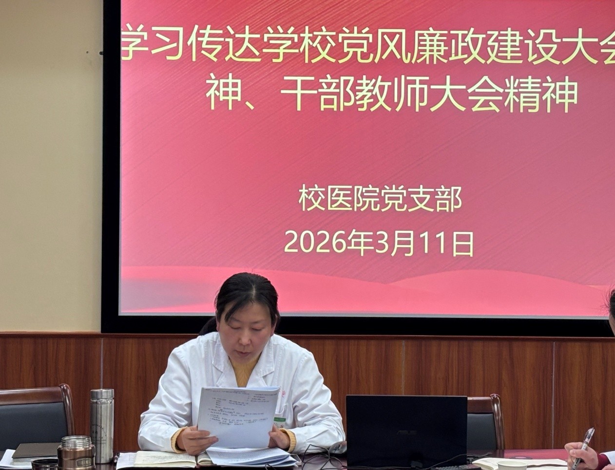 校医院召开党的建设暨党风廉政建设会议、学校干部教师大会精神学习传达会