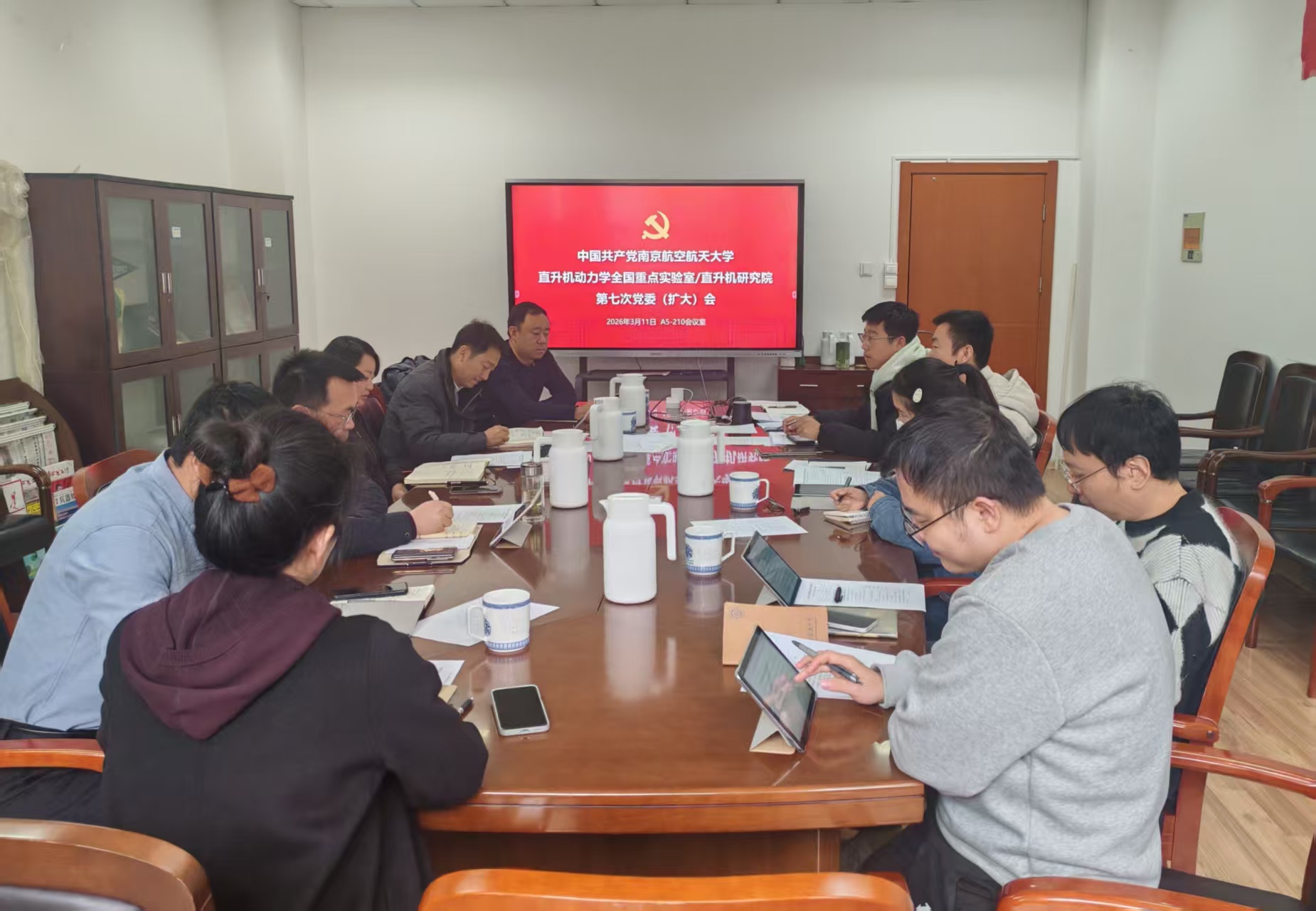 3月16日,直升机实验室/直升机研究院召开全体教职工大会,进一步扩大学习教育覆盖面,推动学习教育向全体教职工延伸。许赞向全体教师传达了学校2026年党的建设暨党风廉政建设工作会议精神、干部教师大会会议精神以及学校学习教育动员部署会精神和有关工作要求,号召全院教职工要坚守航空报国初心,将正确政绩观融入教育教学、科学研究全过程,以“功成不必在我”的精神境界和“功成必定有我”的历史担当,扎实推进各项工作。