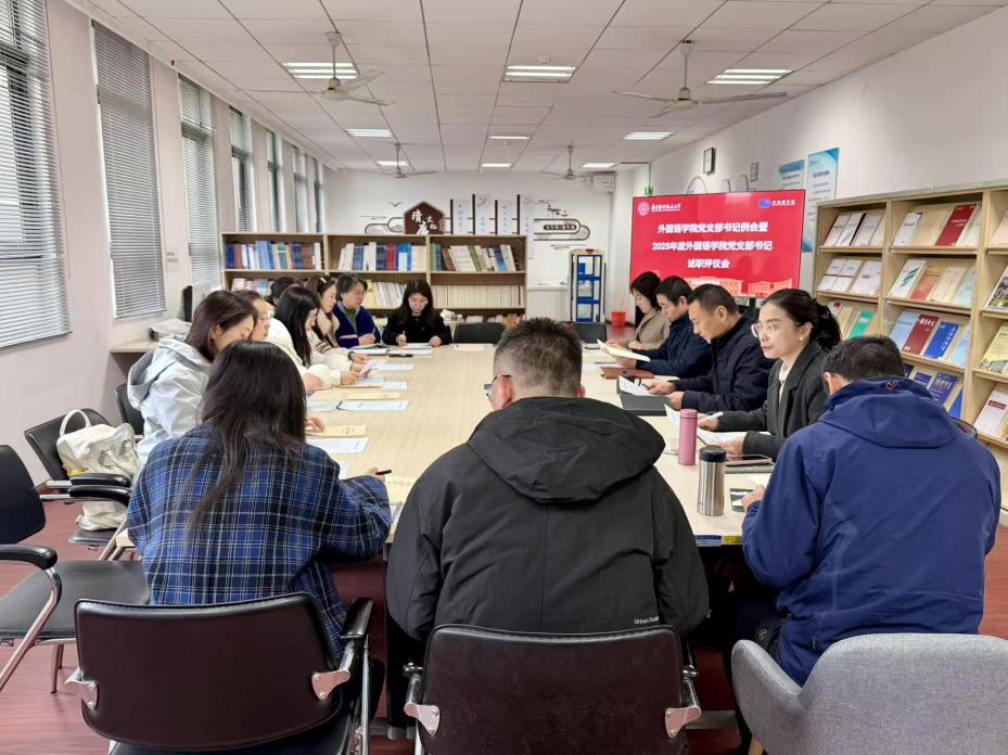 3月19日,外国语学院召开党支部书记例会暨2025年度党支部书记述职评议会。学院党委委员、各教工及学生党支部书记参加会议。