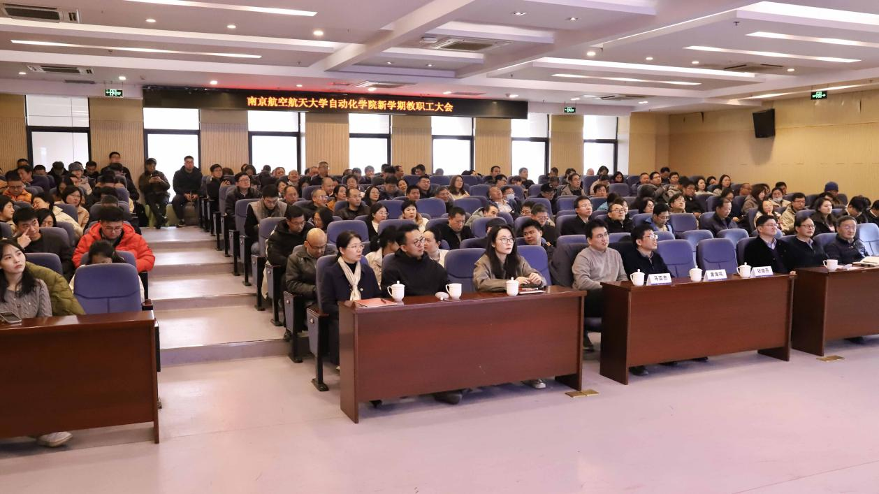 院长陈谋首先传达了学校2026年度干部教师大会精神,他指出,应该深刻领会、精准把握校党委和行政决策部署,统一思想行动,结合自动化学院实际,找准定位、积极作为,为学校发展添砖加瓦。随后,陈谋就党建、教学、科研、人事工作、合作交流、学科建设、学生工作、工会与安全工作等八个方面,对学院2025年下半年的工作进行了全面总结,并对2026年上半年工作进行了部署。他强调,2026年是推进《“十五五”发展规划》和《十年行动计划》高质量开篇布局的关键之年。学院将坚持以习近平新时代中国特色社会主义思想为指导,深入贯彻党的二十大和二十届历次全会精神,以“控制科学与工程”双一流学科建设为牵引,继续坚持“高标定位、争创一流”的信念,保持“锚定目标、奋发作为”的姿态,不懈努力、接续奋斗,持续推动学校学院事业发展提速超越,为到2035年实现建成具有全球影响力的高水平研究型学院的目标而努力前进。