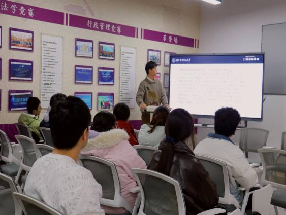 1025202班班主任贺万裕老师以维护名誉权为例,形象地讲解了法律分析的方法,指出法律分析中各个要素的重要性,同学们积极思考,主动提问,气氛活跃。