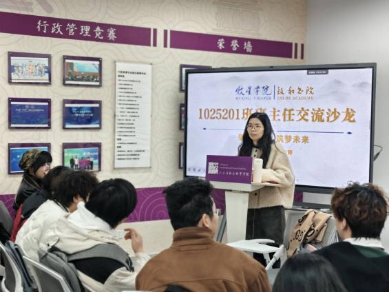 1025100班班主任孙秋芬围绕“AI时代核心能力”展开深入分析,她认为在人工智能快速发展的背景下,学生应培养敏捷学习能力、发挥自身独特价值。