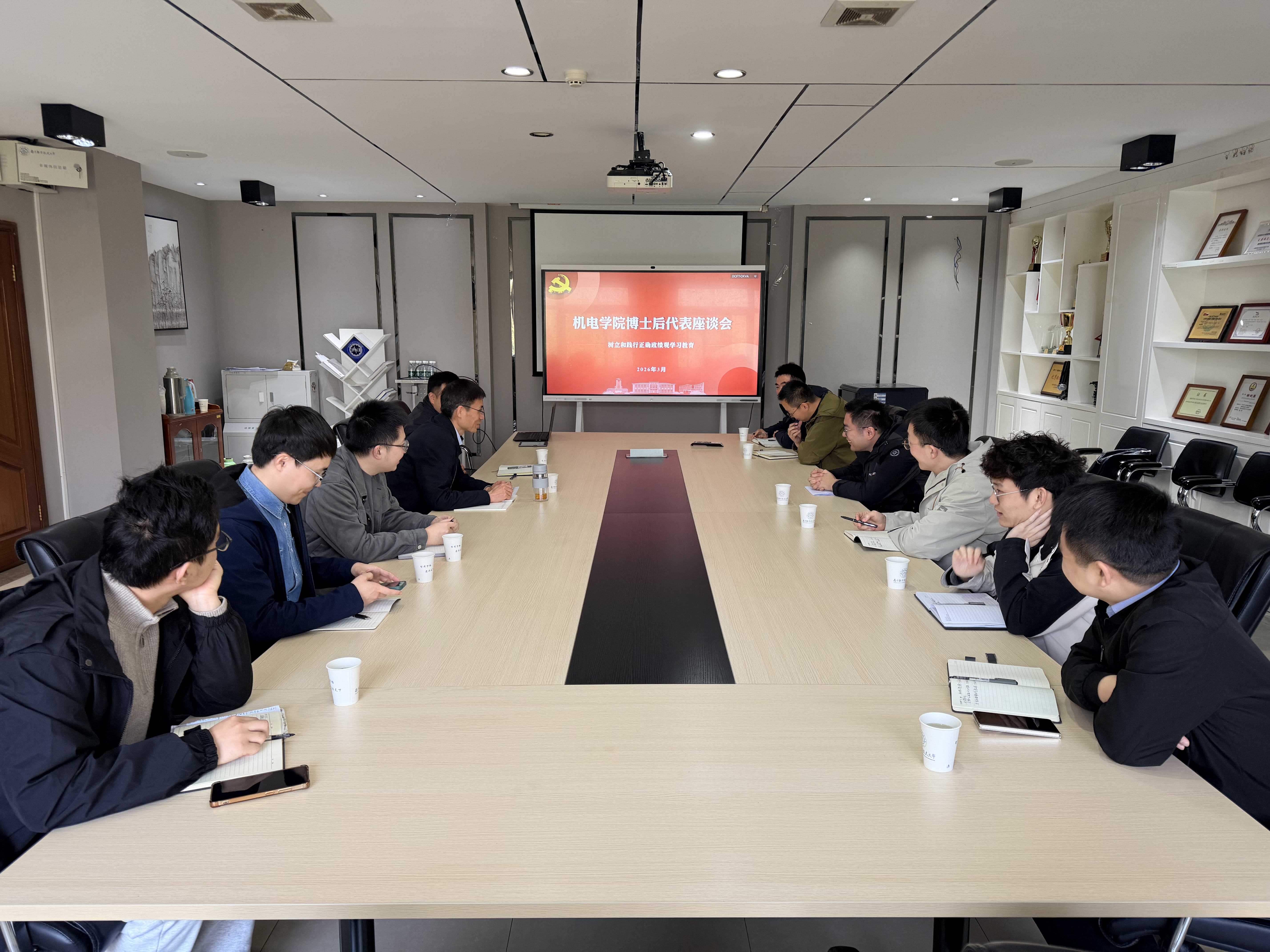 为扎实推进树立和践行正确政绩观学习教育走深走实,广泛听取青年教师意见建议,凝聚学院高质量发展合力,3月25日上午10:00,机电学院在明故宫校区15号楼341会议室召开博士后代表座谈会。学院党委书记刘虎及学院办公室相关人员参加座谈会。