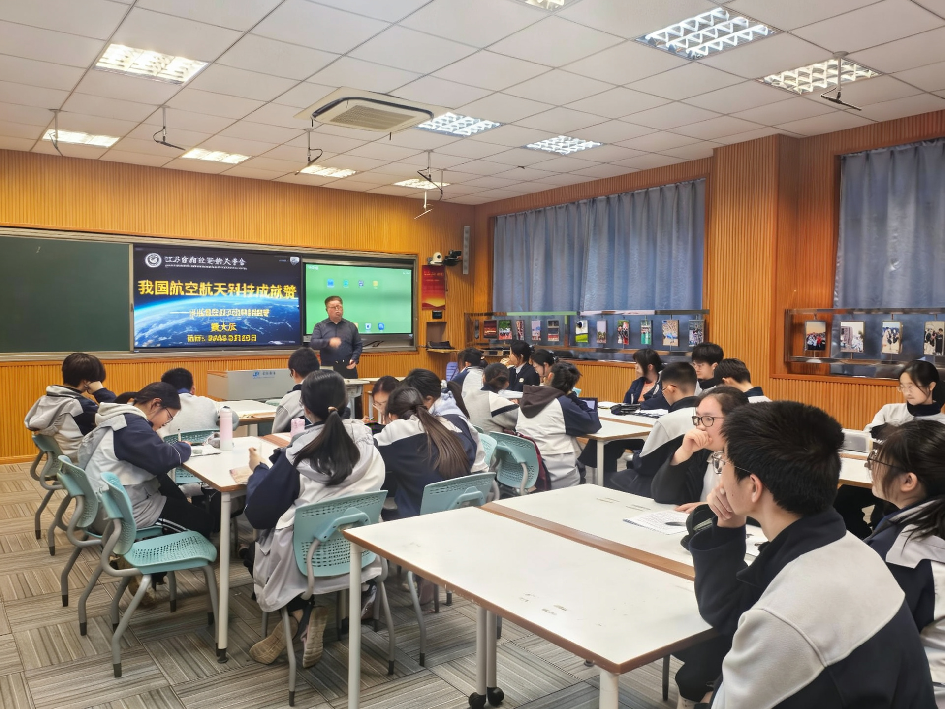 随后,黄大庆为建平中学学生作“我国航空航天科技成就赞——讲述航空航天的科研故事”专题讲座。他结合自身参与国家重点型号研制和科研攻关的亲身经历,用一个个生动的故事展现了我国航空航天事业的跨越式发展。报告会现场,同学们积极互动,踊跃提问,进一步激发了航空报国的热情与志向。