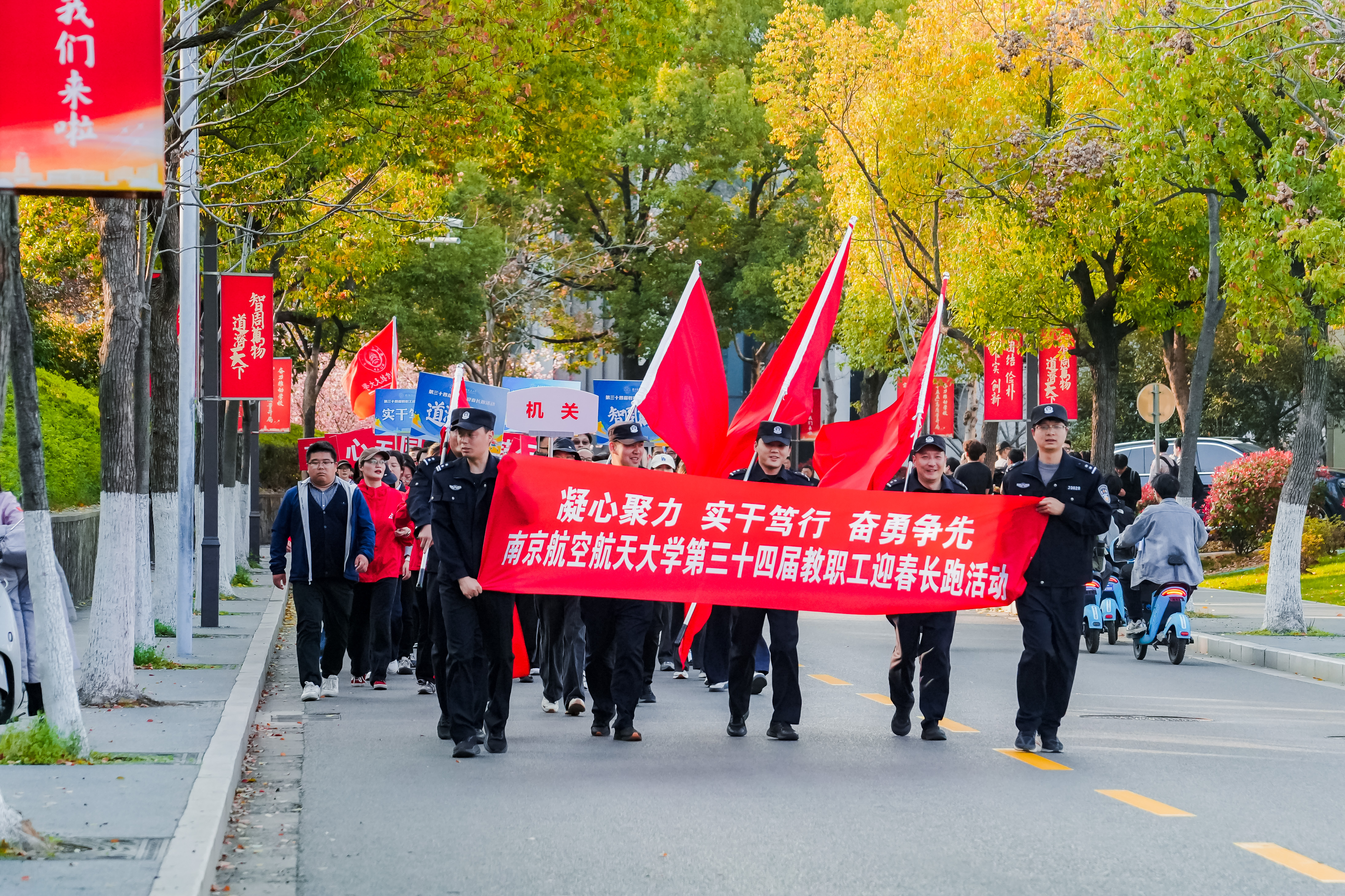 三个校区的迎春长跑队伍浩浩荡荡,大家身着整齐的服装,步伐坚定、精神昂扬。秩序井然的长跑队伍、鼓舞人心的横幅标语和铿锵有力的口号,充分展现了我校教职工在奋力推动建设航空航天民航特色鲜明的世界一流大学征程上凝心聚力、锐意进取、奋勇争先、担当作为的精神风貌。本次活动持续开展图片直播,吸引了36000多人次线上观看,共同感受运动的魅力。