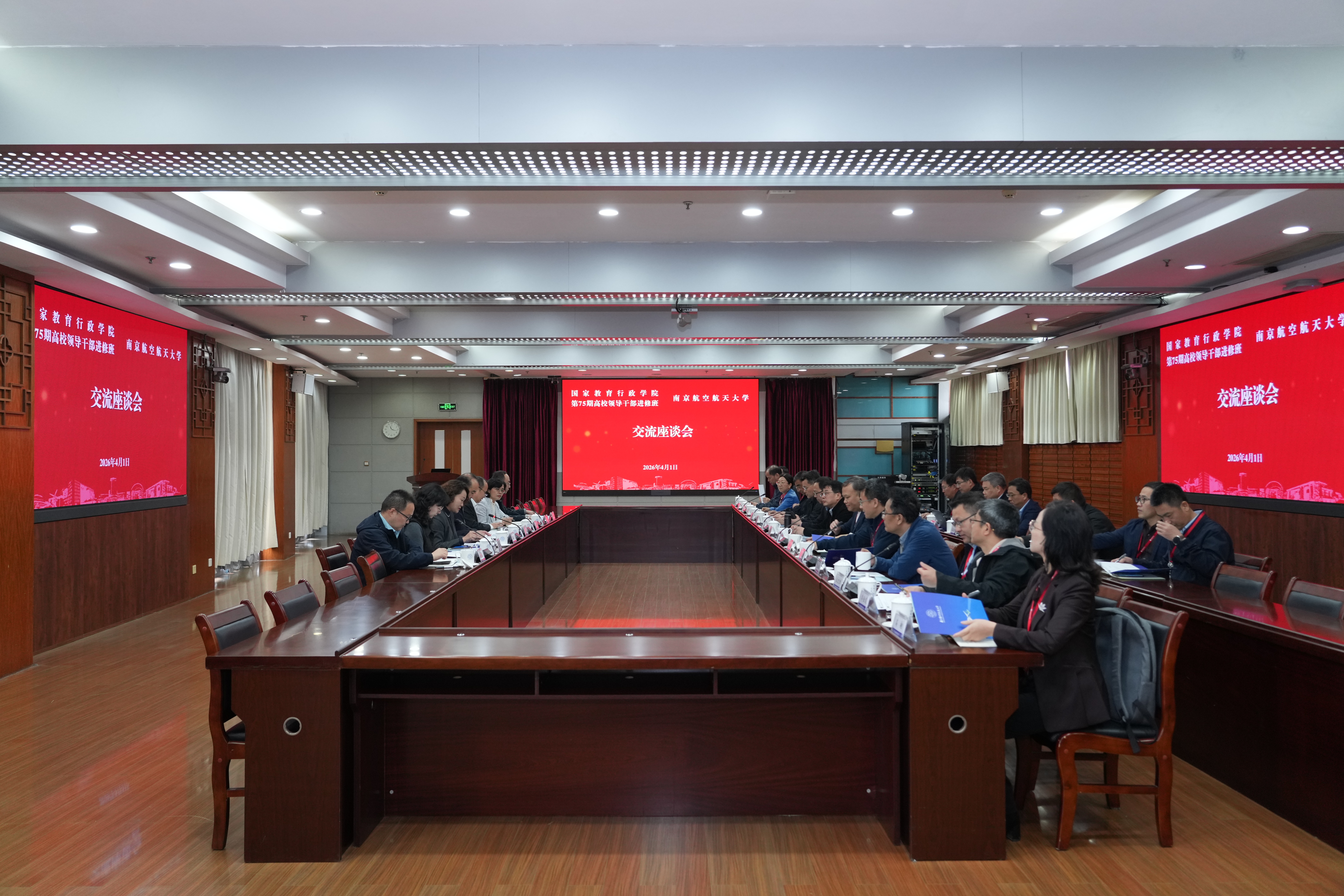 4月1日,由全国24所高校副校级以上领导干部组成的国家教育行政学院第75期高校领导干部进修班江苏调研团来我校开展专题调研,我校党委副书记陶勇,副校长吴启晖,党委常委、组织部部长王晖出席座谈会。