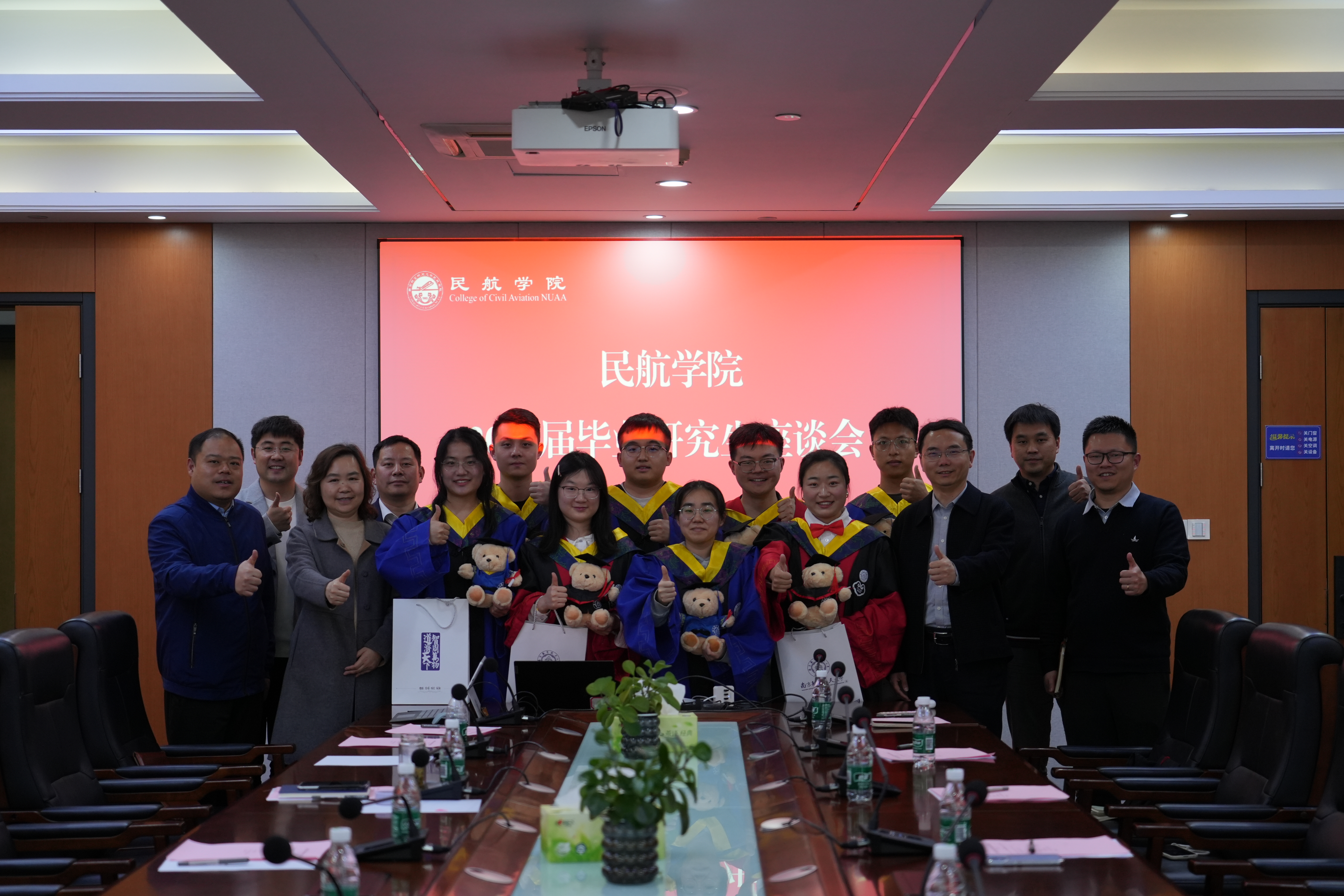 毕业研究生代表依次发言,回顾了在民航学院的求学时光,分享了自己的科研实践经历和学习成长感悟,感谢学院的悉心培养,并围绕课程建设、资源共享、就业指导等提出了建设性意见。与会教师认真倾听、逐一交流,提出了优化思路与改进路径。