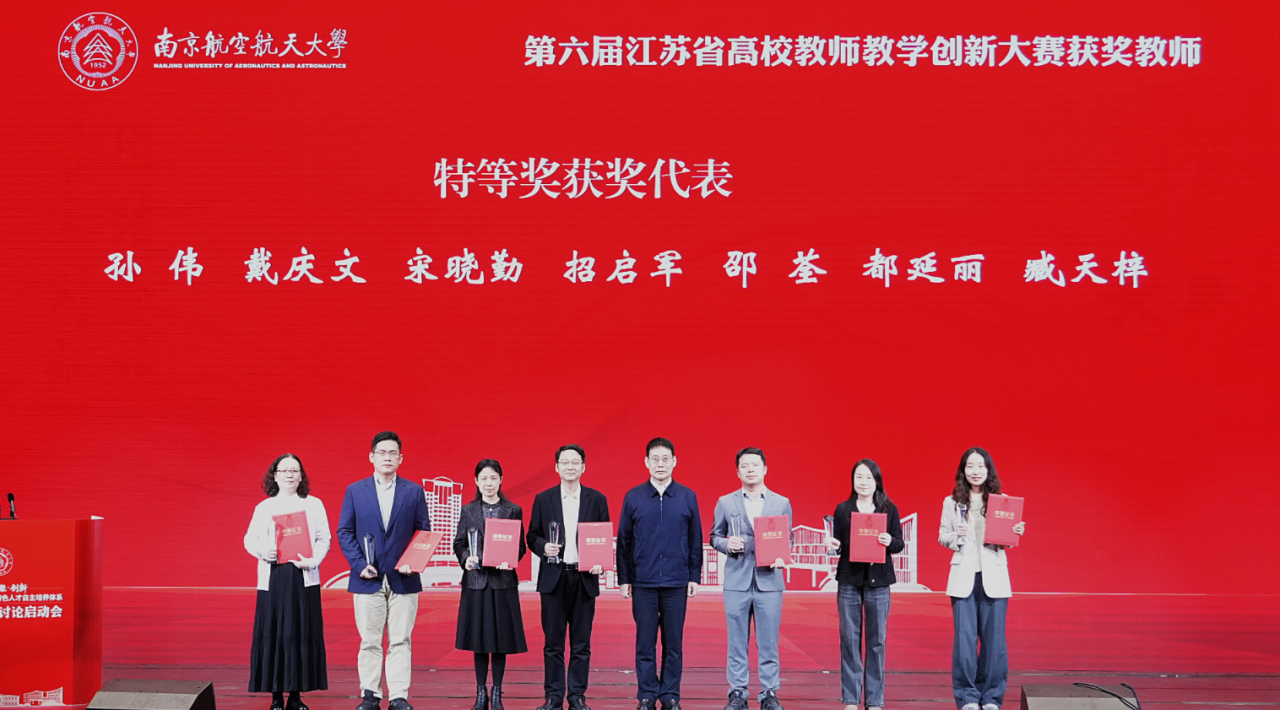 校党委书记甄良为第六届江苏省高校教师教学创新大赛获奖者代表颁奖。在刚刚结束的比赛中,我校教师获得省特等奖7项、一等奖1项、二等奖5项的优异成绩,获奖总数及特等奖数均位居全省高校第一,这些教师将代表我校参加第六届全国高校教师教学创新大赛的选拔训练营、角逐国赛奖项。