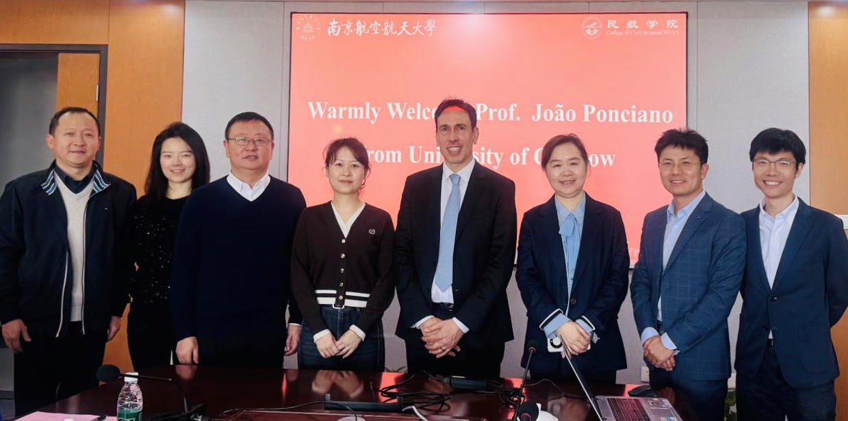 4月2日,英国格拉斯哥大学詹姆斯・瓦特工程学院国际化主任若昂·蓬西亚诺教授来民航学院交流。校国际化部国际合作处副处长徐智鑫、项目科科长单晶,民航学院副院长吴薇薇、院长助理解建光及教师代表参加会议。会议由民航学院土木与机场工程系副主任肖飞主持。