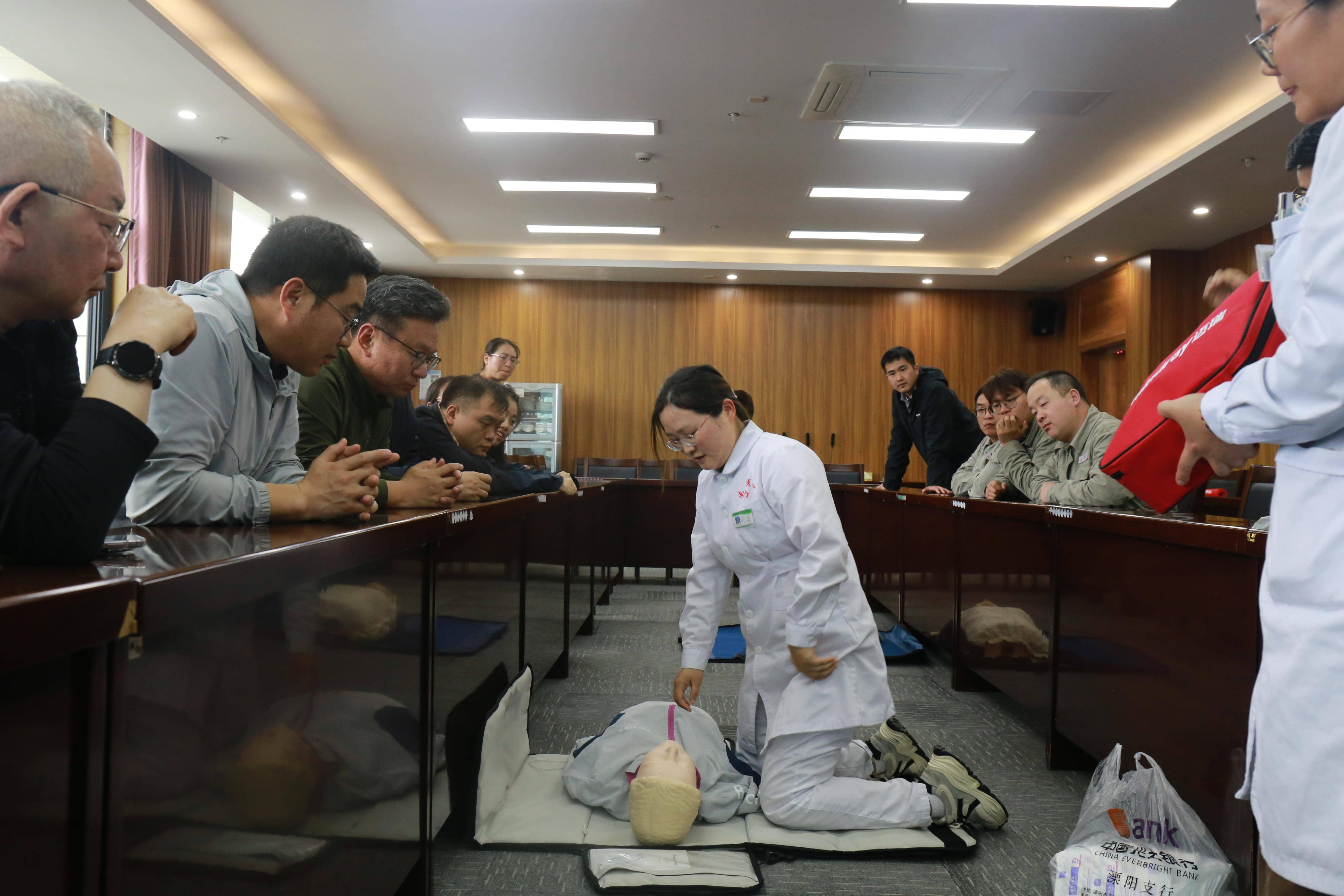 在实操环节,马医生借助人体模型和AED训练机,按照标准急救流程进行了完整演示,并逐一讲解操作中的易错点和注意事项。参训党员积极参与,从胸外按压到人工呼吸,从AED开机到电极片粘贴,每个环节都动手操作,马医生现场指导、纠正。大家互相交流,现场学习氛围浓厚热烈。