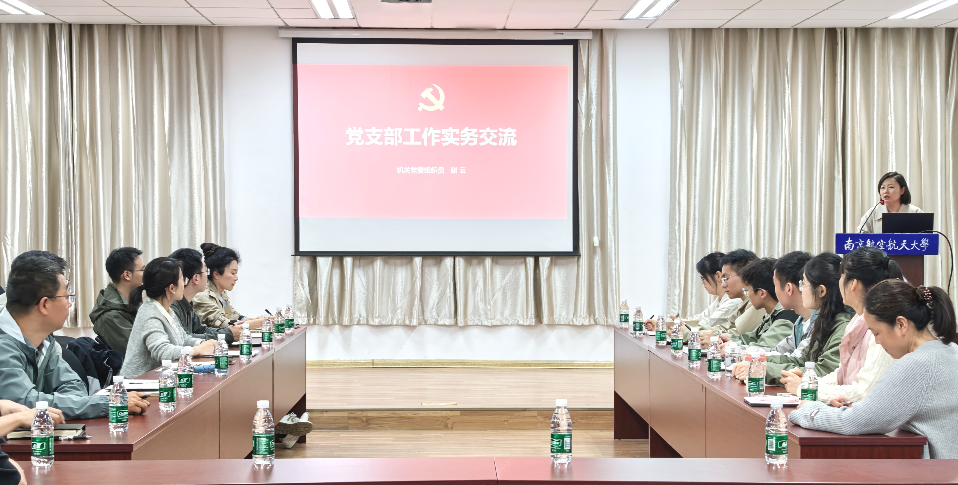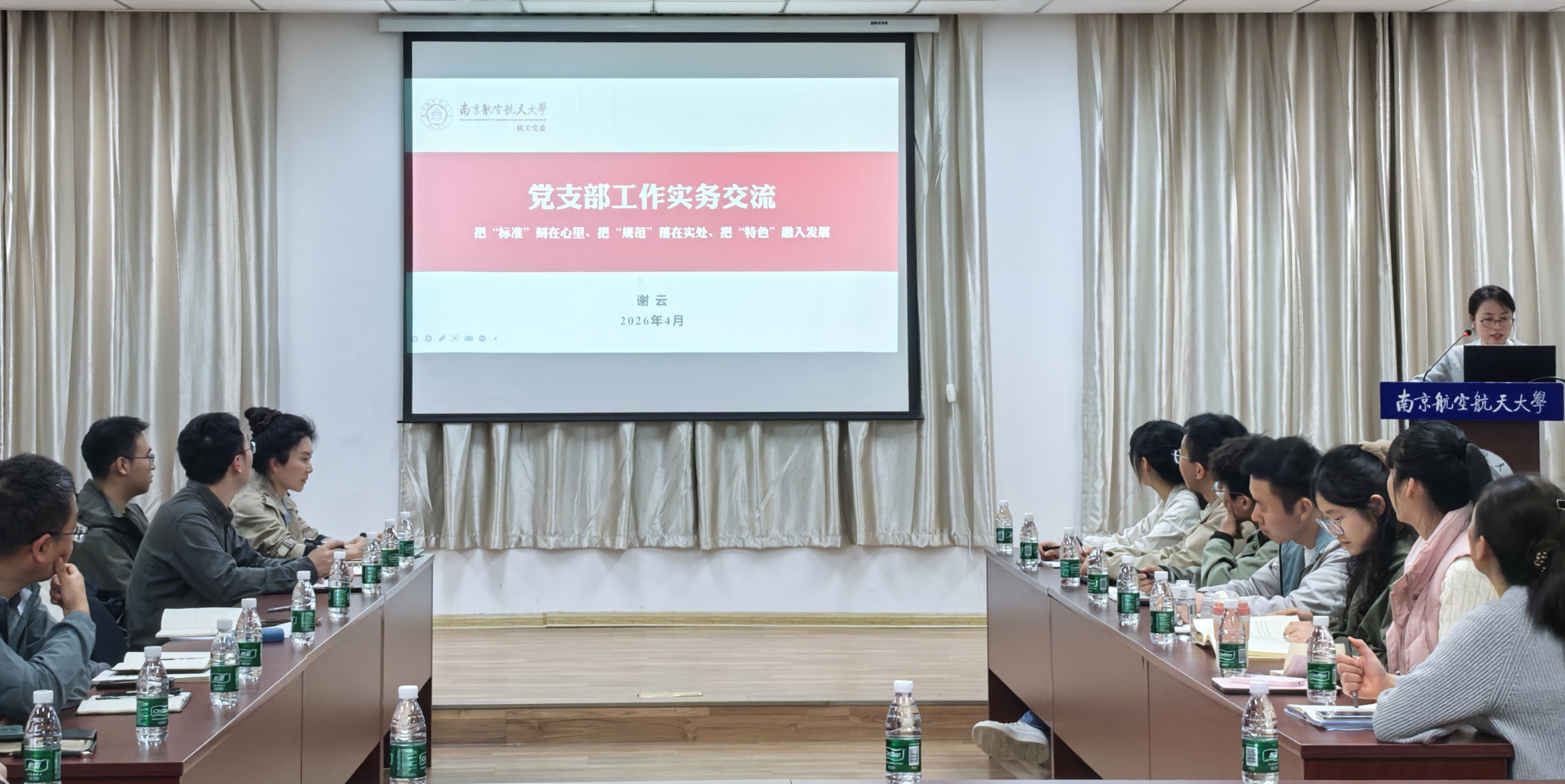 谢云以“把‘标准’刻在心里、把‘规范’落在实处、把‘特色’融入发展”为主题,从“为何要做”“如何落实”“怎样创优”三个层面展开分享,并围绕党建工作中常见共性问题进行了针对性分析和研讨交流,帮助基层党务工作者理清工作思路、提升业务能力。她指出,党建工作的标准规范不仅是“硬杠杠”,更是“生产力”,要把“标准”刻在心里、把“规范”落在实处。鼓励各支部结合实际,打造“党建+直升机”特色品牌,推动党建工作与科研育人深度融合,实现特色发展与品牌创建同步推进。