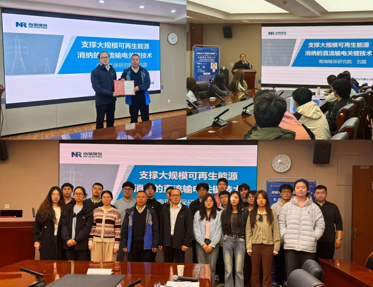 同学们就新能源并网消纳、柔性直流控制策略、特高压设备国产化等热点问题与刘磊进行了深入交流探讨。刘磊结合自身在南航硕士就读期间的研究经历,以及南瑞继保在柔性直流输电领域从“跟跑”到“领跑”的发展历程,勉励同学们夯实专业基础,关注行业前沿,积极投身国家新型电力系统建设。