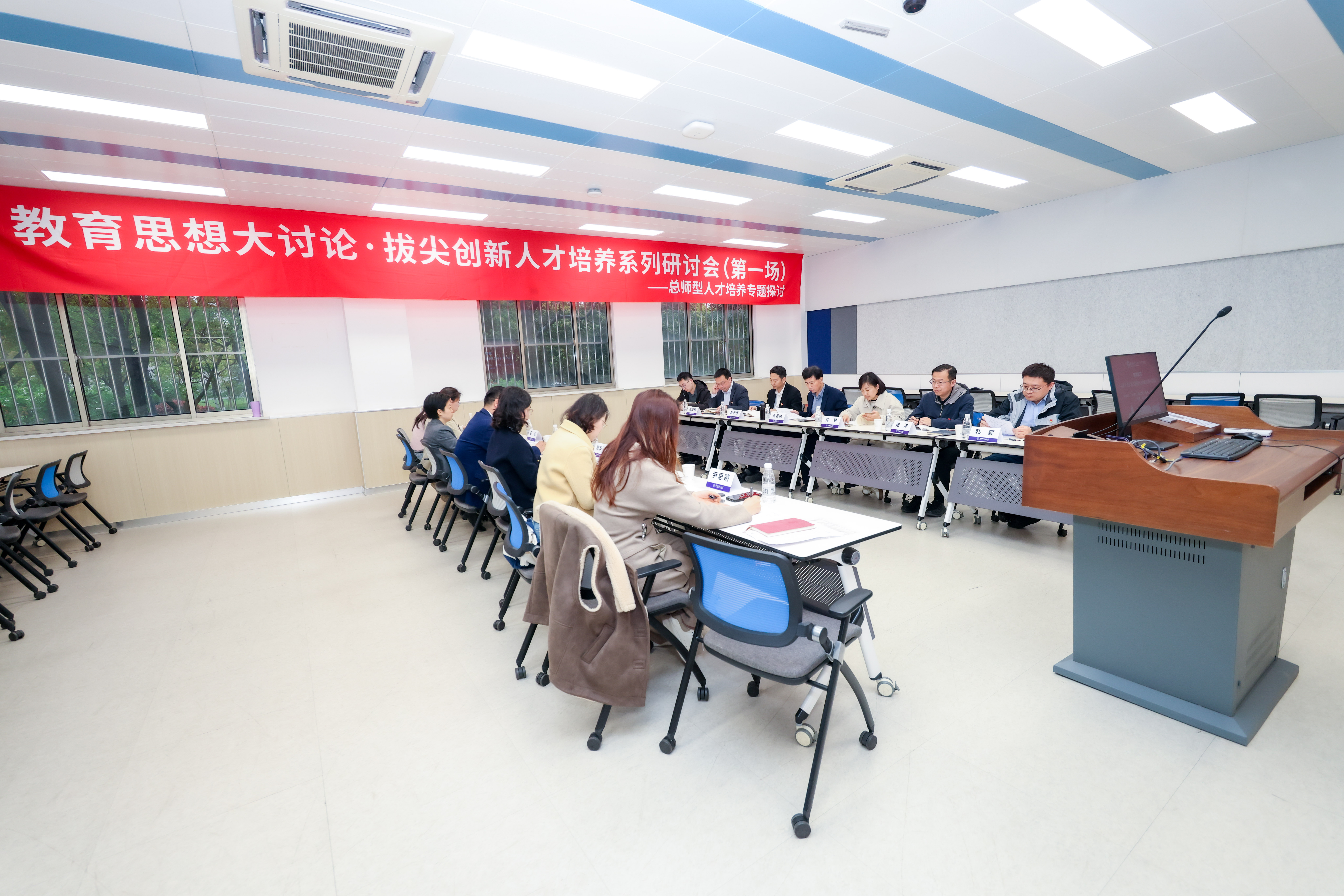 为深入贯彻学校教育思想大讨论工作部署,锚定“总师型”人才培养核心目标,4月13日,长空学院携手直升机动力学全国重点实验室/直升机研究院,以正确政绩观引领人才培养高质量发展为核心,开展教育思想大讨论・拔尖创新人才培养系列研讨会,通过理论领学、深度研讨、协同谋划,专题研讨拔尖创新人才培养路径与科教协同育人机制。教务部部长孔垂谦出席会议,直升机研究院党委书记许赞、院长招启军,两院理论学习中心组成员及相关工作人员参会。会议由长空学院党委书记、院长朱建军主持。