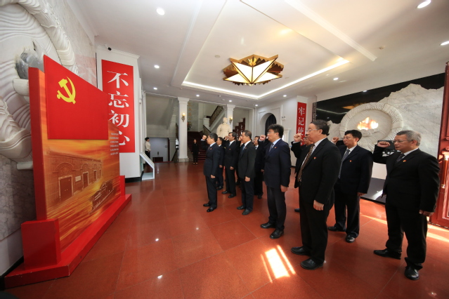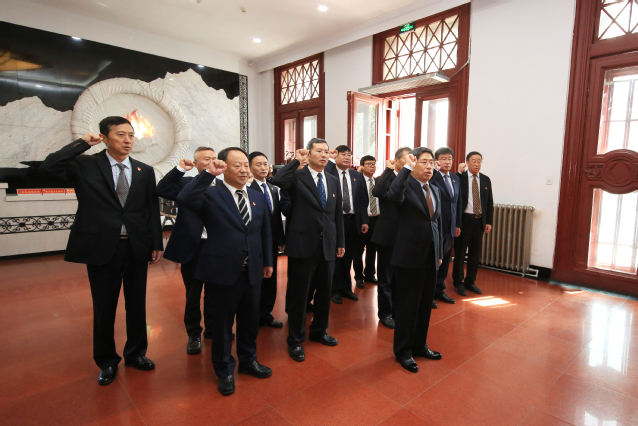 参观结束后,在校党委书记王树权的领誓下,校党委常委、校长助理一起在东北烈士纪念馆前厅内悬挂的中国共产党党旗下,重温入党誓词,表达不忘初心、砥砺前行的信念和决心。