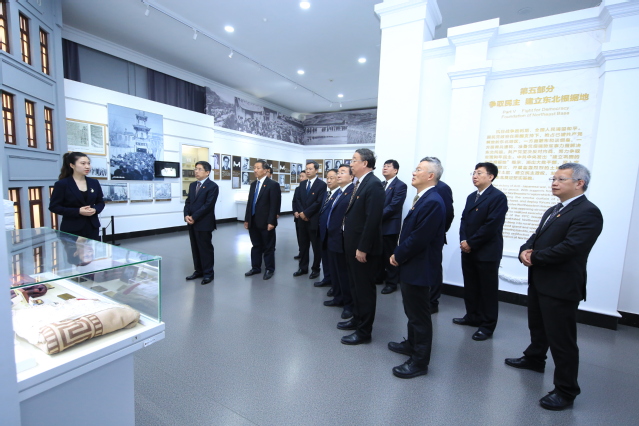 东北烈士纪念馆位于哈尔滨市南岗区一曼街,是中国共产党于1948年10月10日建立的第一个永久性纪念馆。大家走进展厅,认真听取工作人员讲解赵一曼、八女投江、赵尚志、杨靖宇、李兆麟等英雄事迹和张正伦、胡振铎、苏丕承、王益升等哈工大烈士事迹,不时停下脚步,上前仔细端详,询问烈士遗物收集、重要遗址保护等情况,了解馆藏文物背后的故事。当看到哈工大张正伦等4位烈士的抗日救国事迹时,大家久久驻足、为之动容,表示要在新时代赓续传承好哈工大人血液中流淌的红色基因。