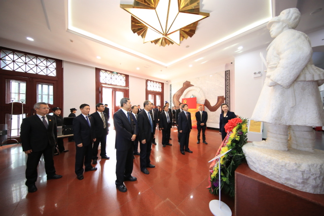 哈工大报讯(张妍/文 辛然/图)9月12日,在我校开展“不忘初心、牢记使命”主题教育之际,校党委常委、校长助理来到东北烈士纪念馆,参观《黑土英魂——东北抗日战争和解放战争时期烈士事迹陈列》,缅怀革命先烈,回顾红色历史,重温入党誓词。