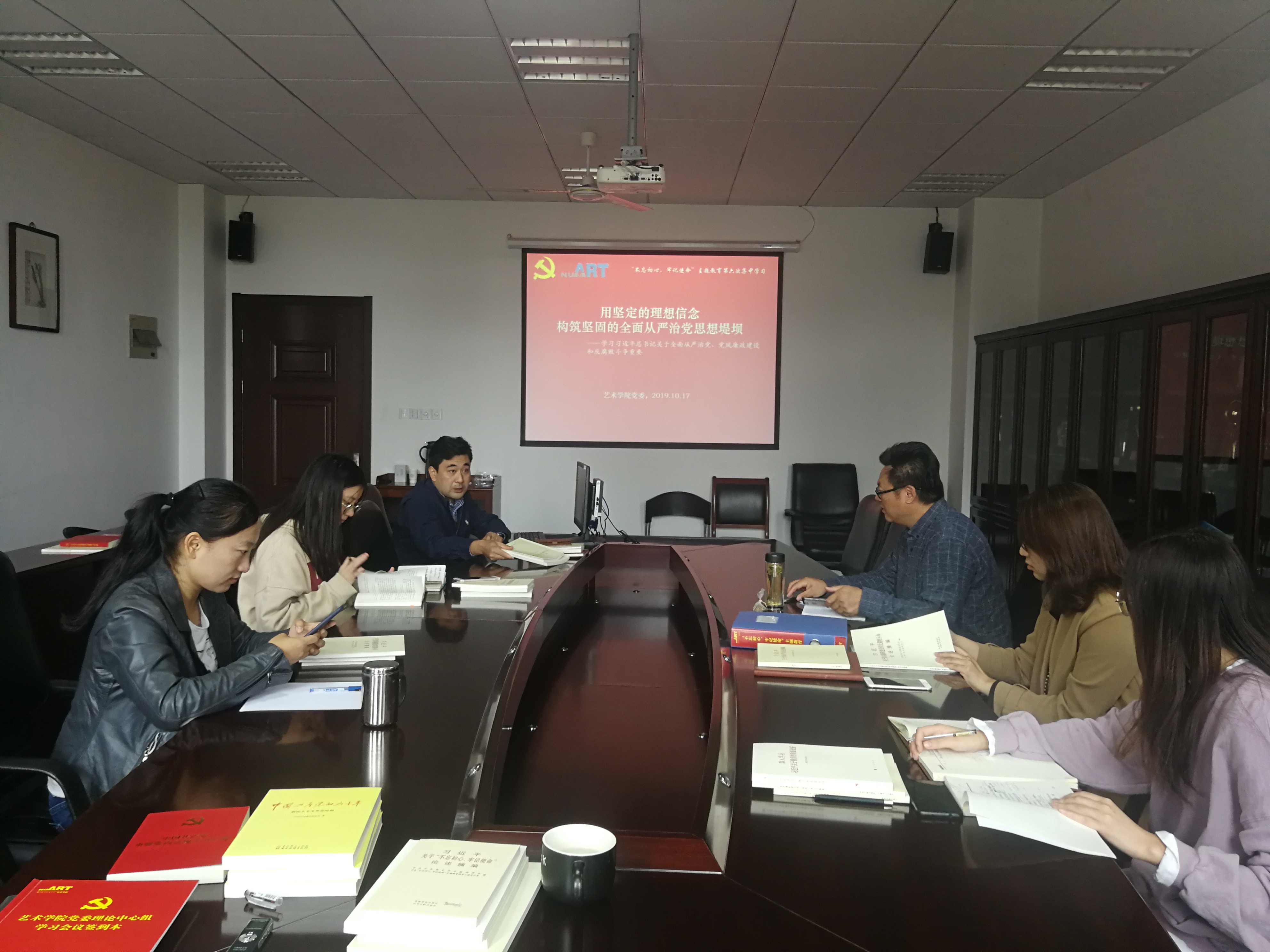 “用坚定的理想信念,构筑坚固的全面从严治党思想堤坝”,10月17日,艺术学院召开“不忘初心、牢记使命”主题教育第六次集中学习,学院党委书记高小泽以此为题,面向班子成员、支部书记、辅导员进行了一场关于“全面从严治党、党风廉政建设和反腐败”专题党课。
