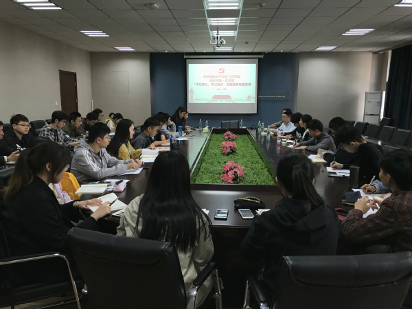 11月14日中午,电子信息工程学院本科生第一党支部在学院楼209会议室举办题为“时代的脉搏:中国共产党人的初心与使命”的“不忘初心,牢记使命”主题教育专题党课,学院党委副书记黄彬担任主讲人,全体支部成员参加。